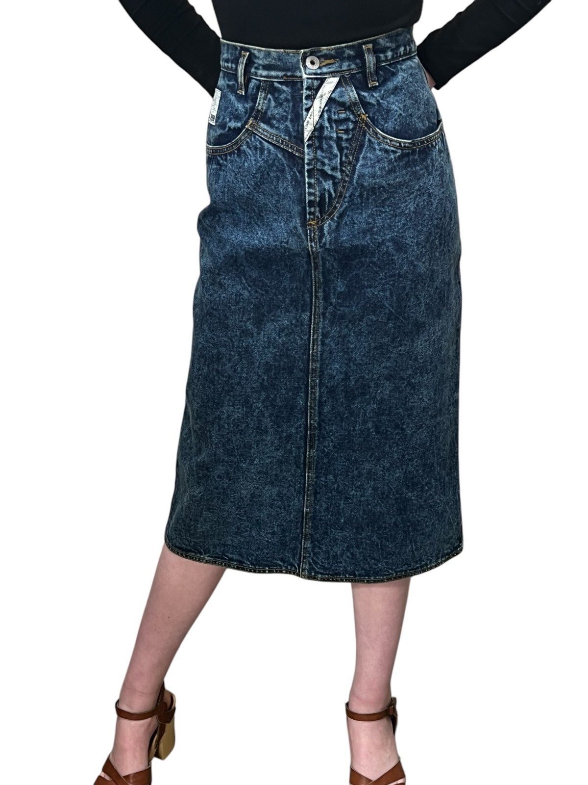 Sz M Vtg 80s Denim Pencil Skirt High Waist Dark Wash Jordache Blue Jeans Midi