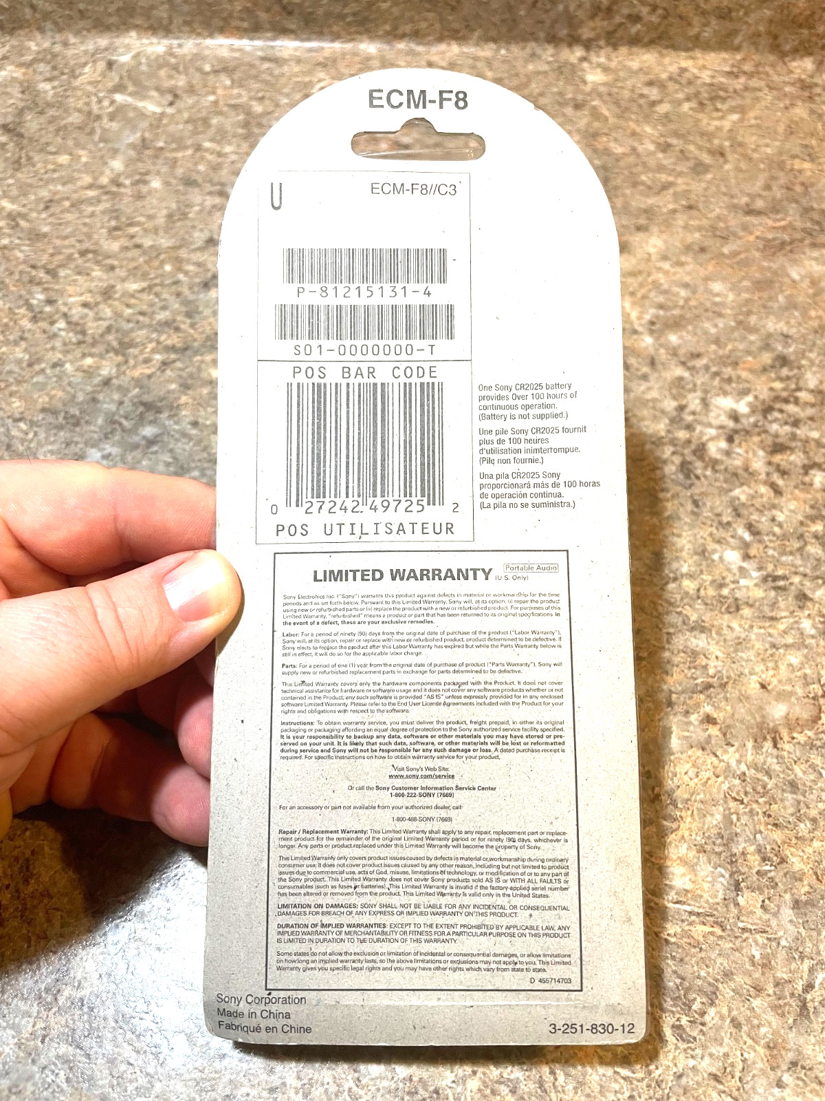 Sony ECM-F8 -TableTop Boundary Condenser Microphone L-Shaped Mini-Plug 1/8 3.5