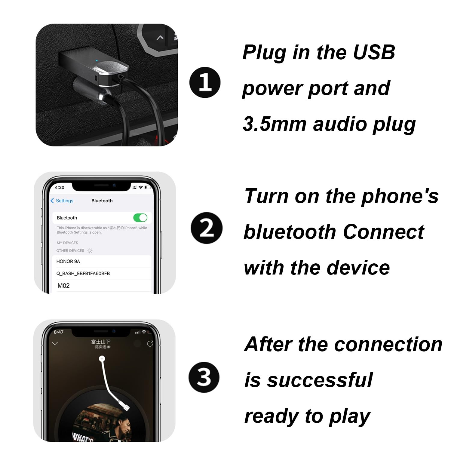 Bluetooth 5.3 to Aux Adapter for Car,USB 3.5mm Female BT Receiver,Aux to Blue...