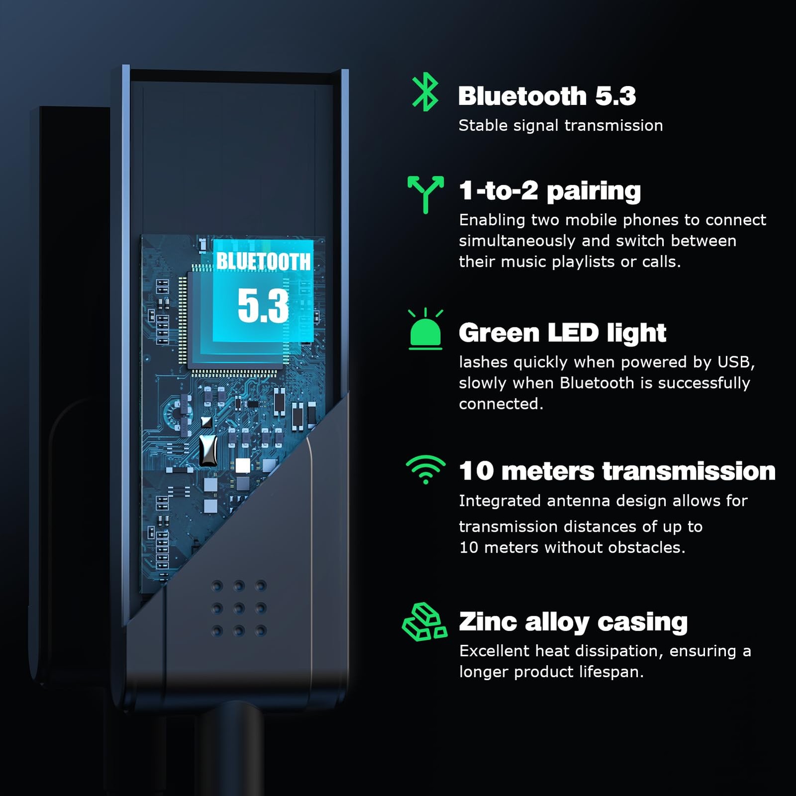 Bluetooth 5.3 to Aux Adapter for Car or Amp, USB to 3.5mm Female Bluetooth Re...