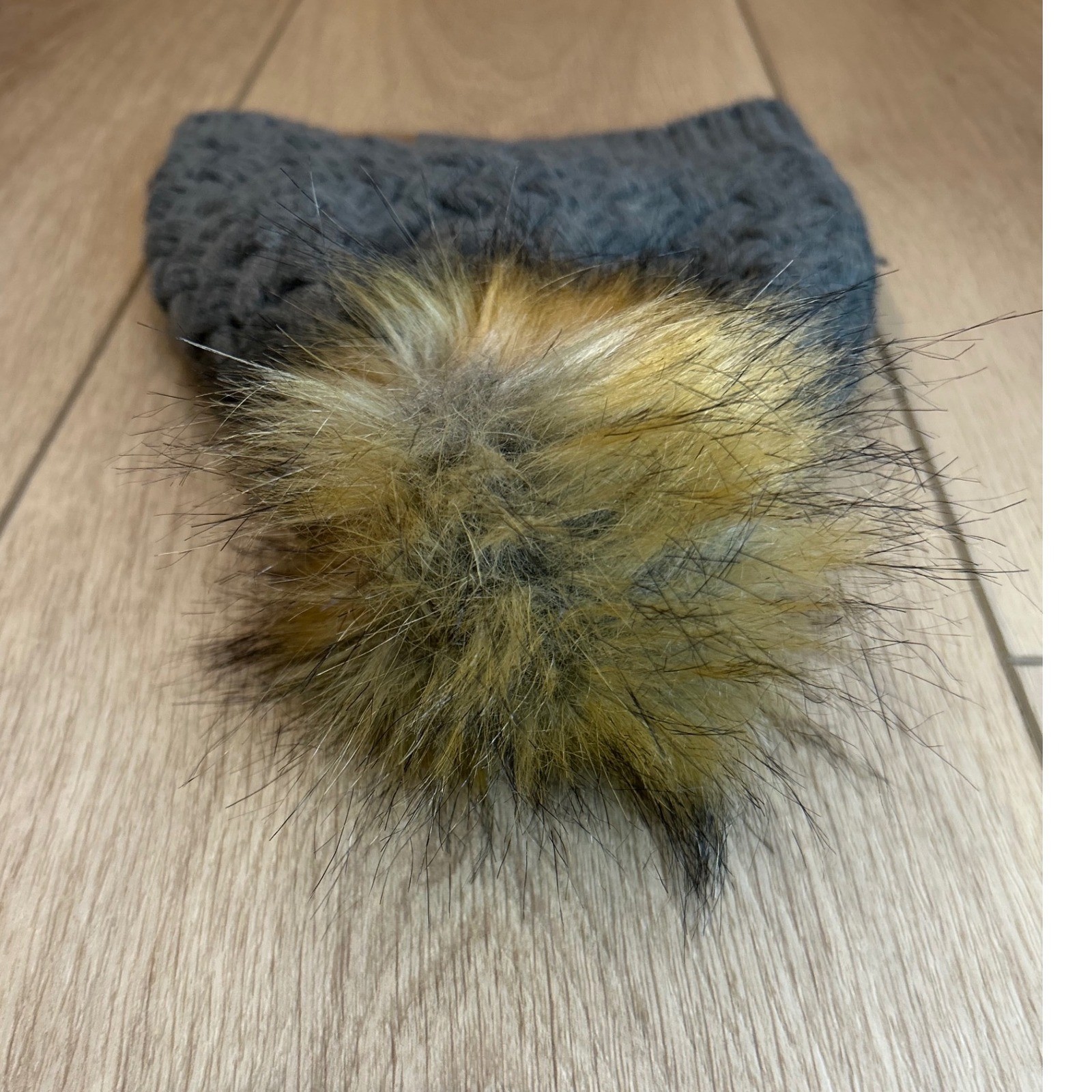 как выглядит Chunky Knit Beanie Hat With Faux Fur Pom Gray Women Winter Warm Fashion фото