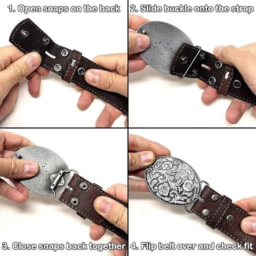как выглядит Leather Belt Strap with Embossed Western Scrollwork 1.5" Wide with Snaps Tea... фото
