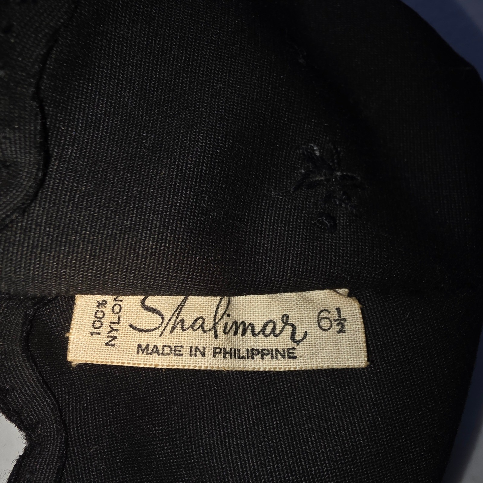 Shalimar Vintage Black Nylon Embroidered Scalloped Opera Gloves Size 6.5 1950s