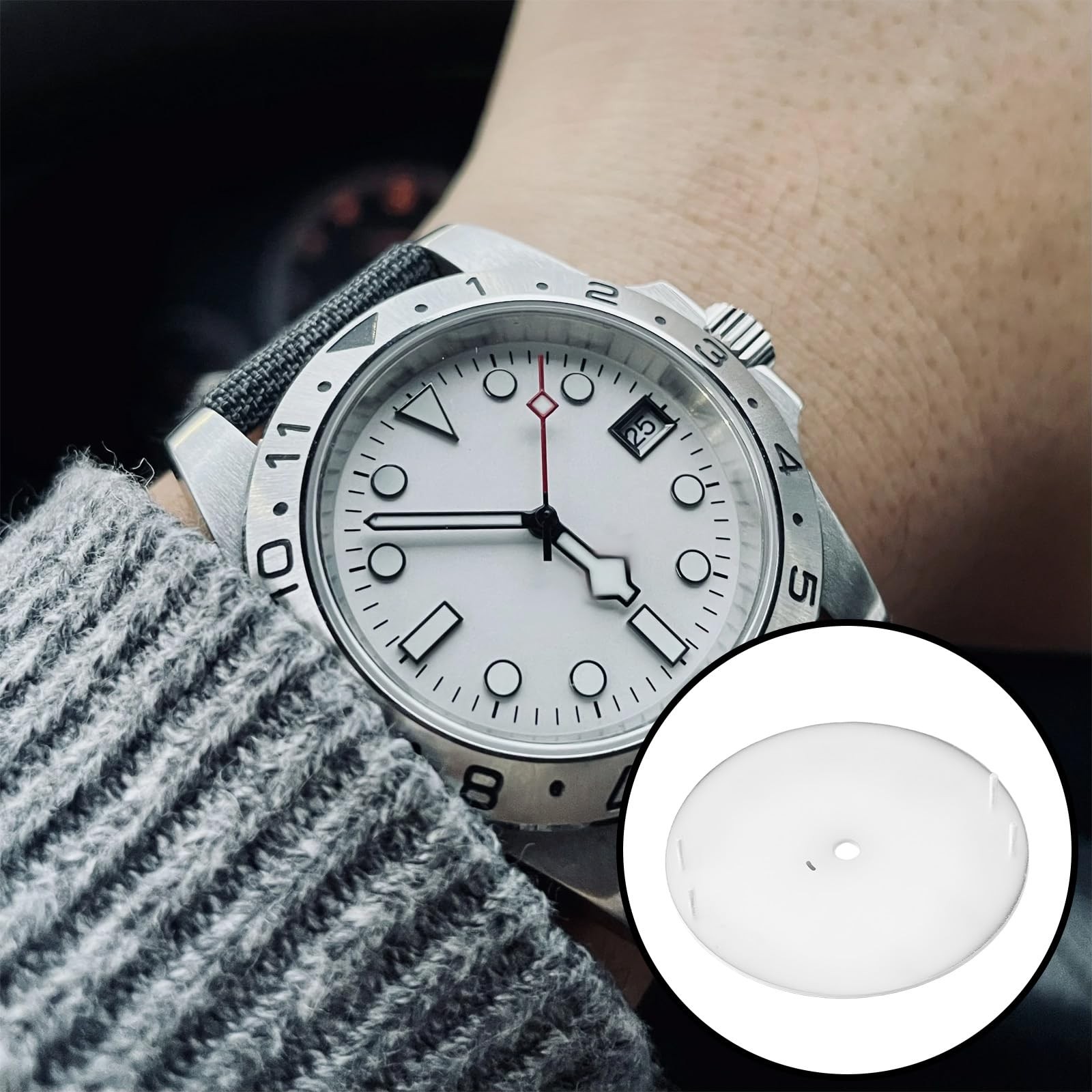 как выглядит 28.5mm White Matte Watch Dial Stainless Steel For NH35 NH36 Movement Repair фото