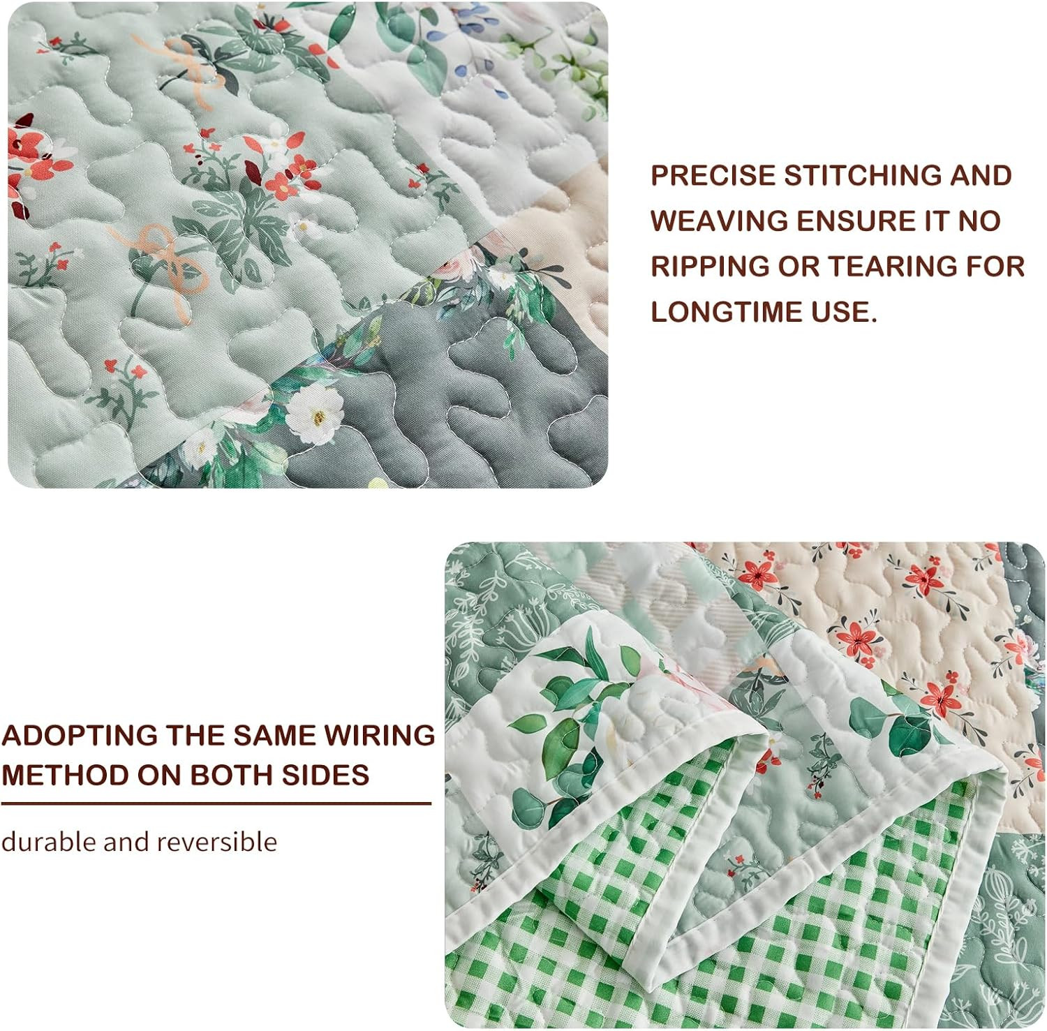 3 Pieces Floral Patchwork Quilt Set King, Green Flowers Design, Soft N Cozy Micr