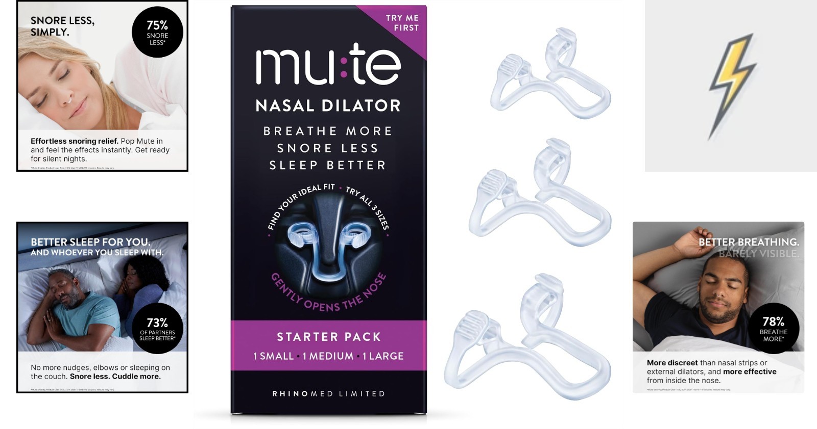 Improved Sleep Breathing: Mute Nasal Dilator 3-Pack - Comfortable Reusable