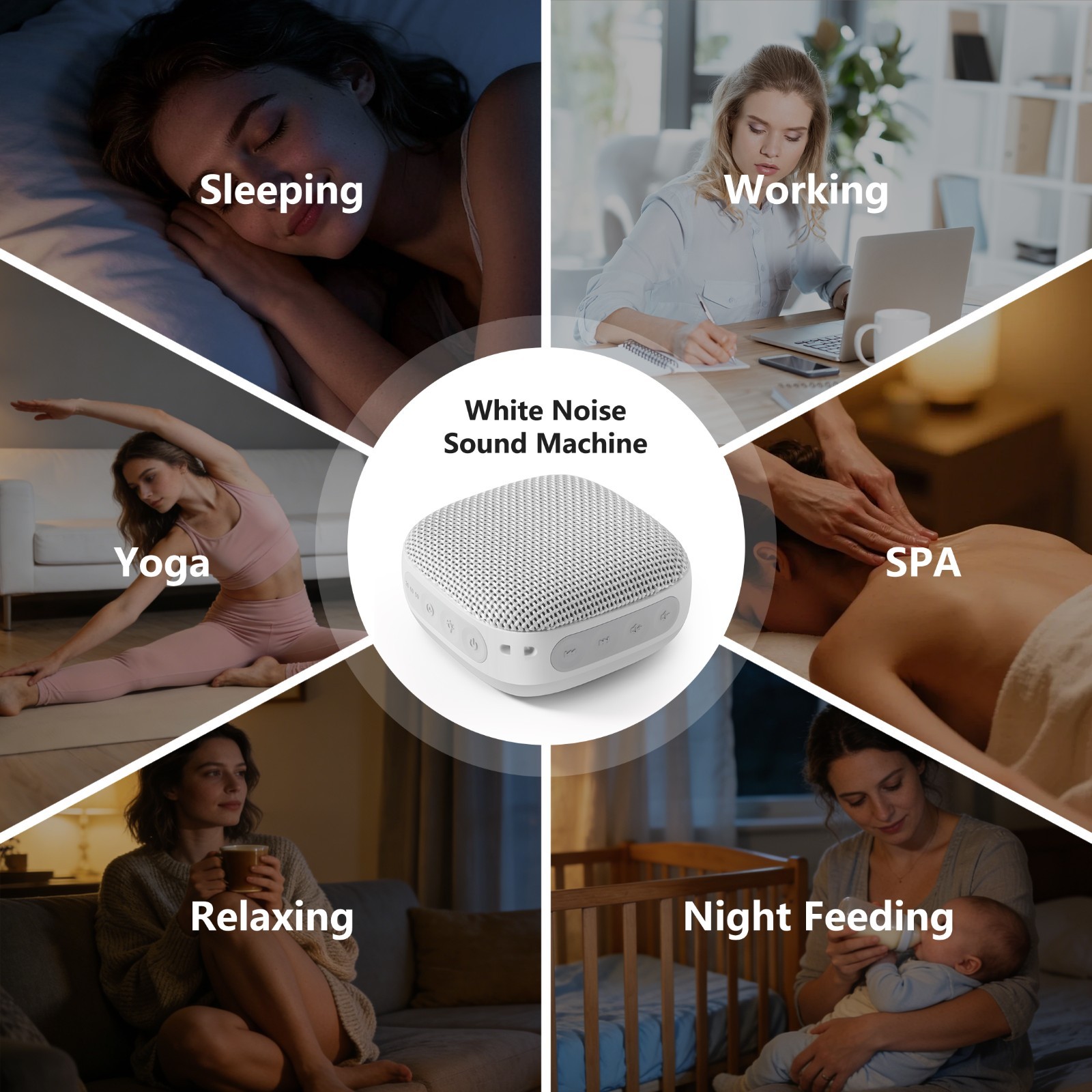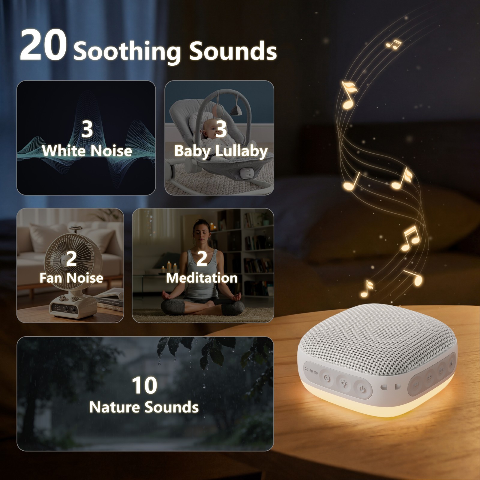 White Noise Machine with 20 Non Looping Natural Soothing Sounds Memory Function