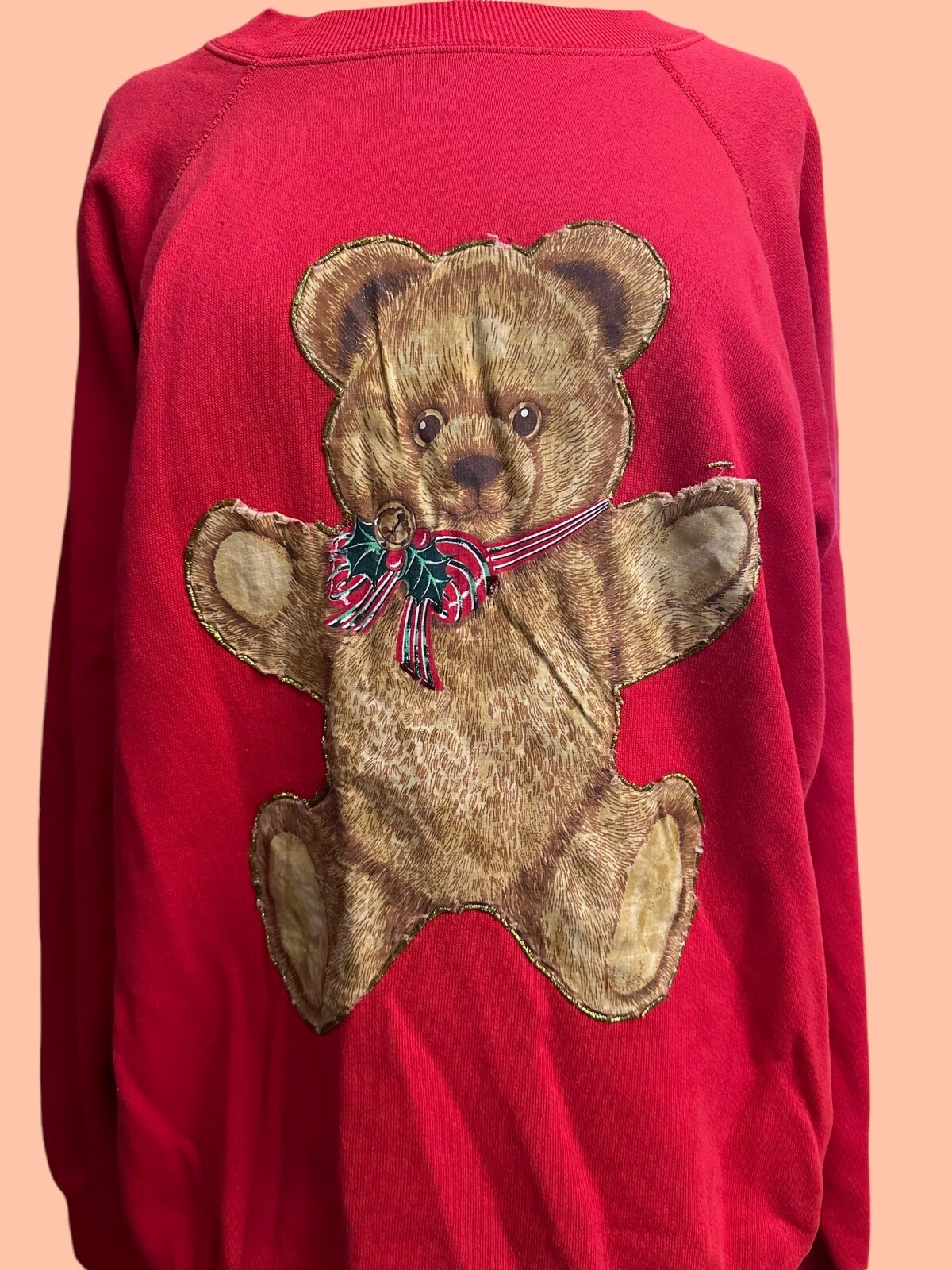 Vintage 80's holiday red teddy bear sweatshirt size womens XL