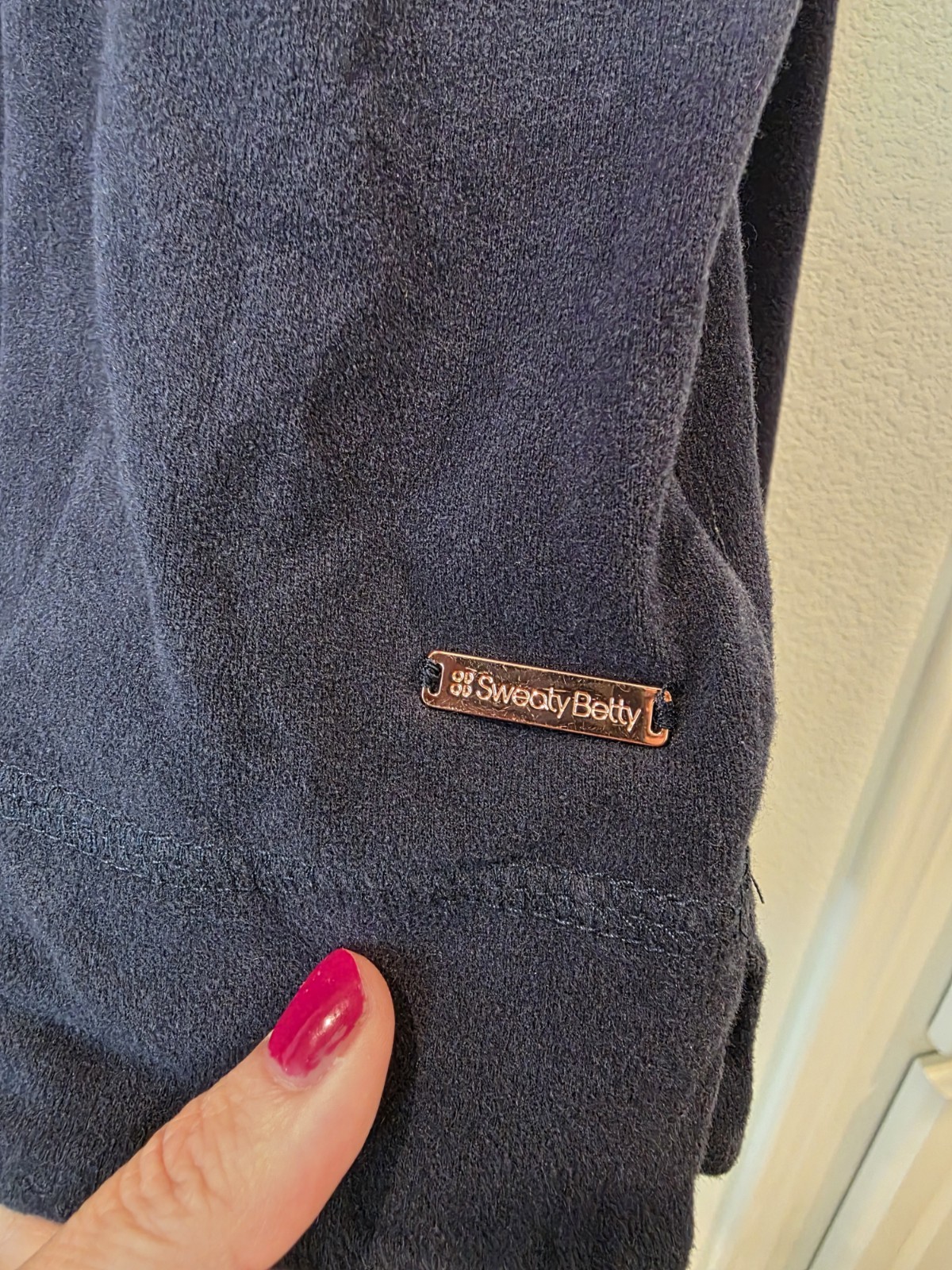 как выглядит Sweaty Betty Escape Luxe Cropped Fleece Hoodie Navy Blue Sz M Chic Athleisure фото