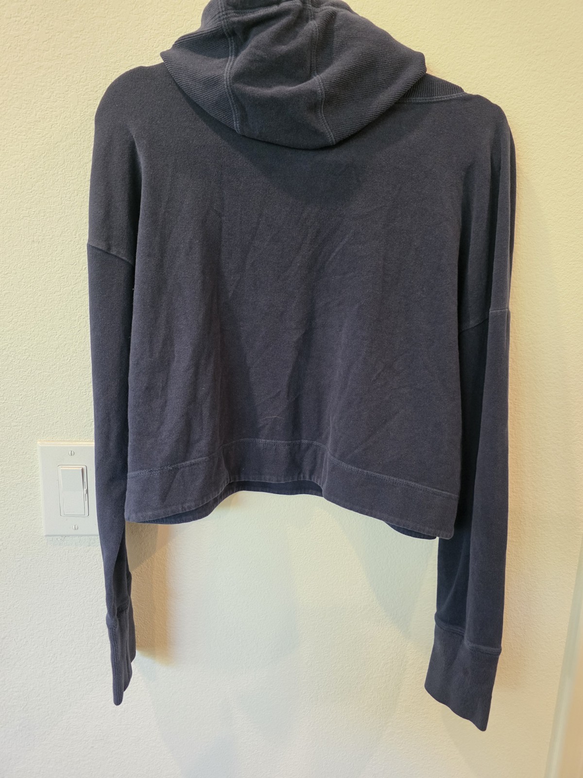Sweaty Betty Escape Luxe Cropped Fleece Hoodie Navy Blue Sz M Chic Athleisure