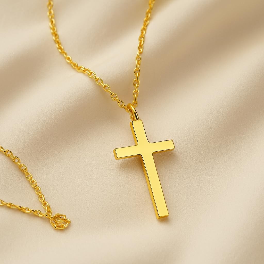 как выглядит 14K Gold Dainty Cross Necklace for Women, Tiny Gold Cross Pendant with Chain,... фото