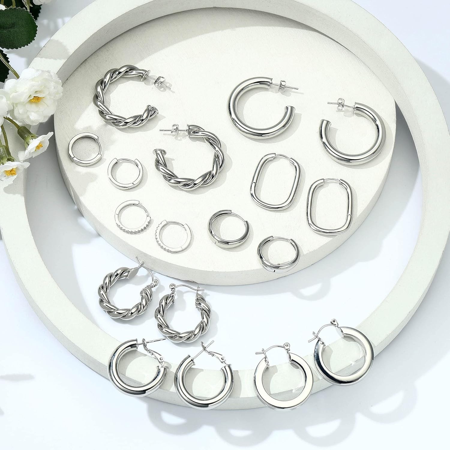 9 Pairs Gold Hoop Earrings for Women, 14K Real Gold Plated Chunky Hoop Earrin...