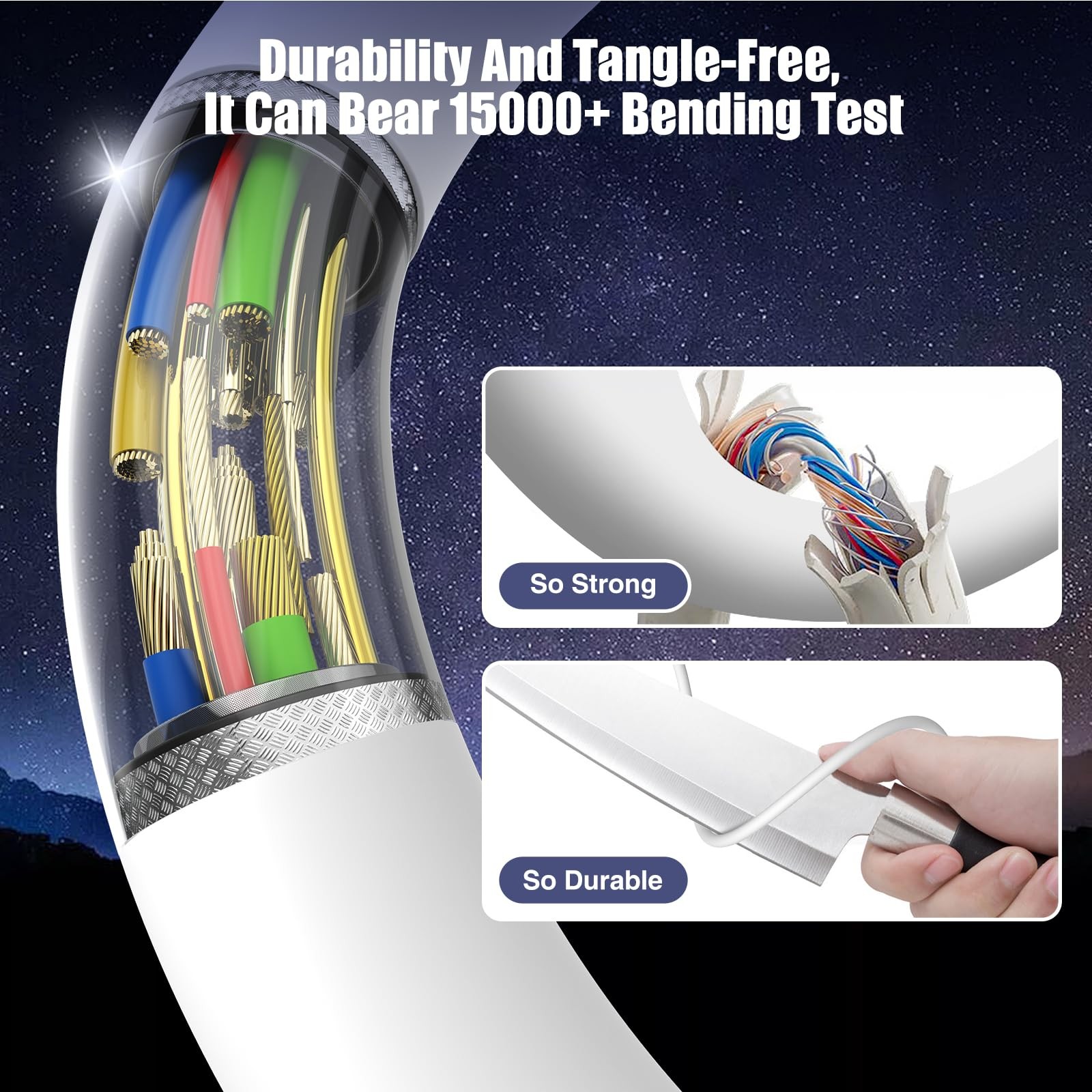 как выглядит 3-Pack 6.6FT 60W USB C to C Cable, Type C 6.6FT 6.6FT 6.6FT, White фото