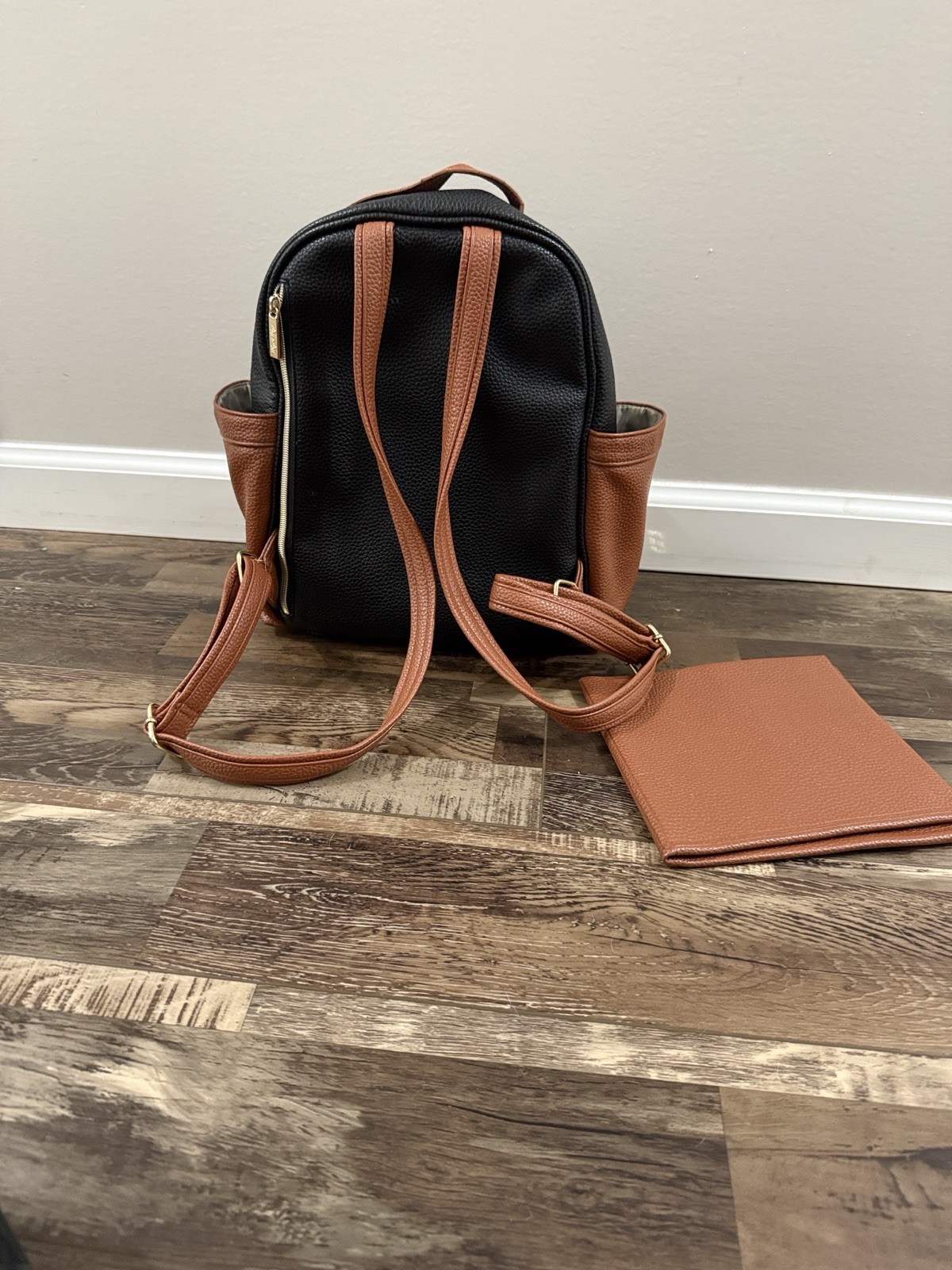 Itzy Ritzy Chevron Diaper Backpack, Changing Pad, Black/Brown/White, Pockets
