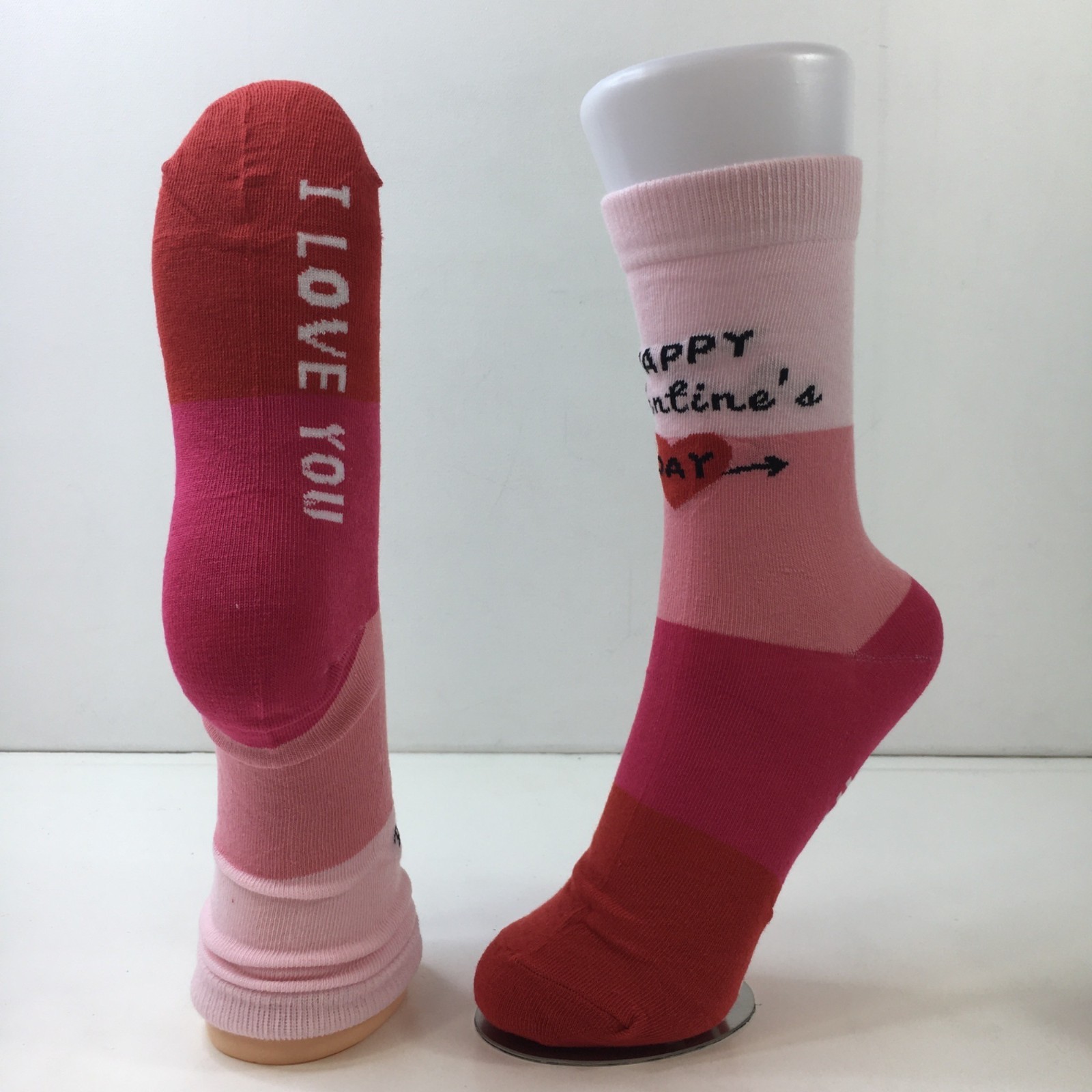 Womens Crew Socks Set 3 Valentines Flamingos Hearts Print Red Pink Black White