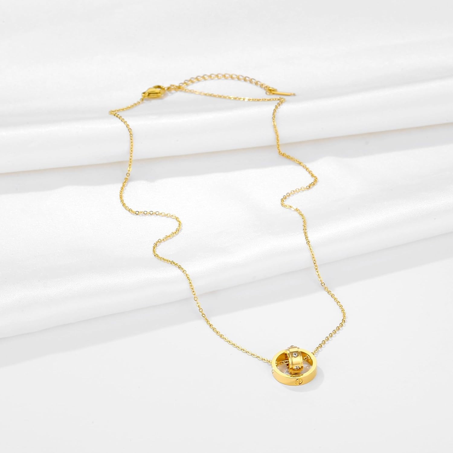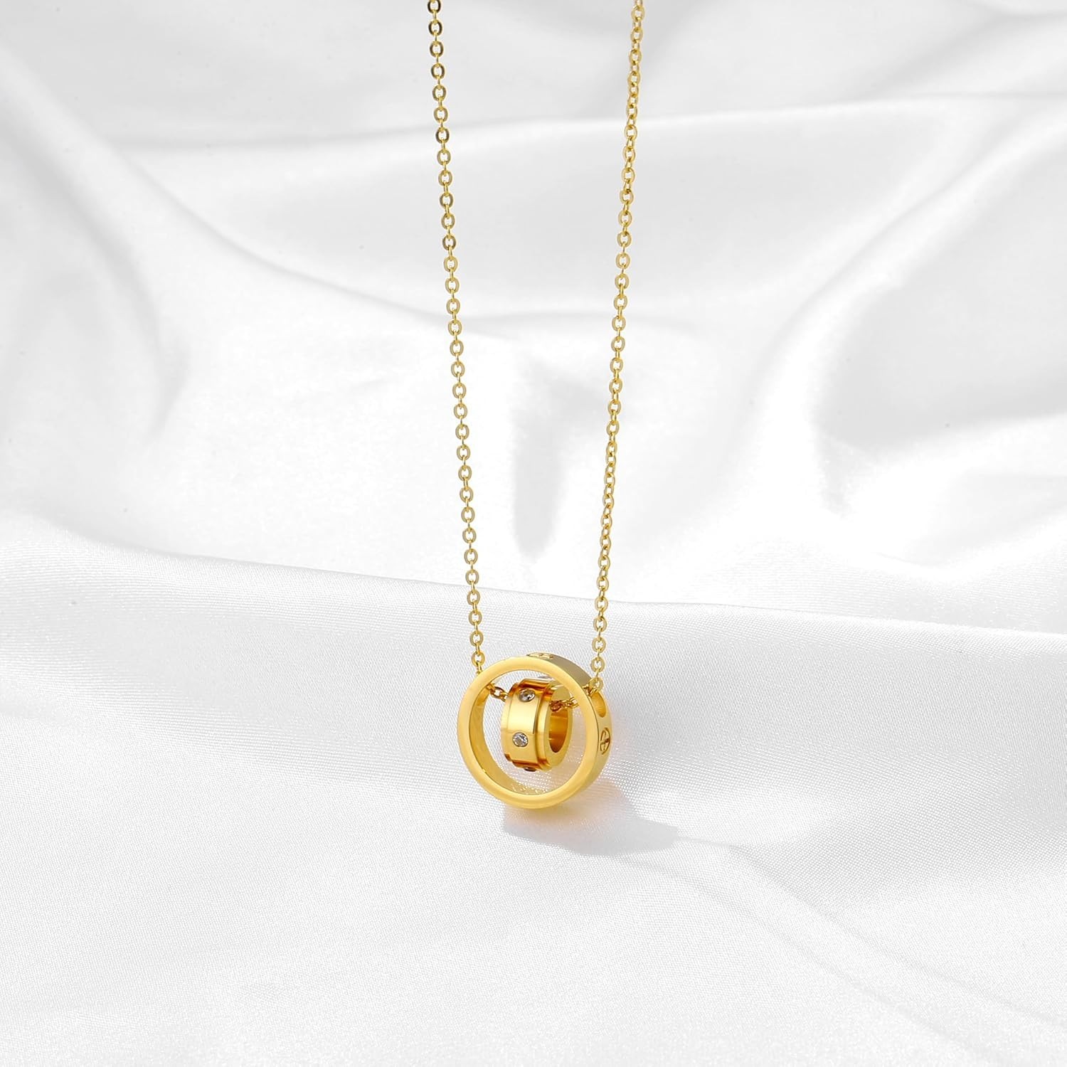 Women's Stainless Steel Necklace -18K Gold Women's Necklace, Gold Interlockin...