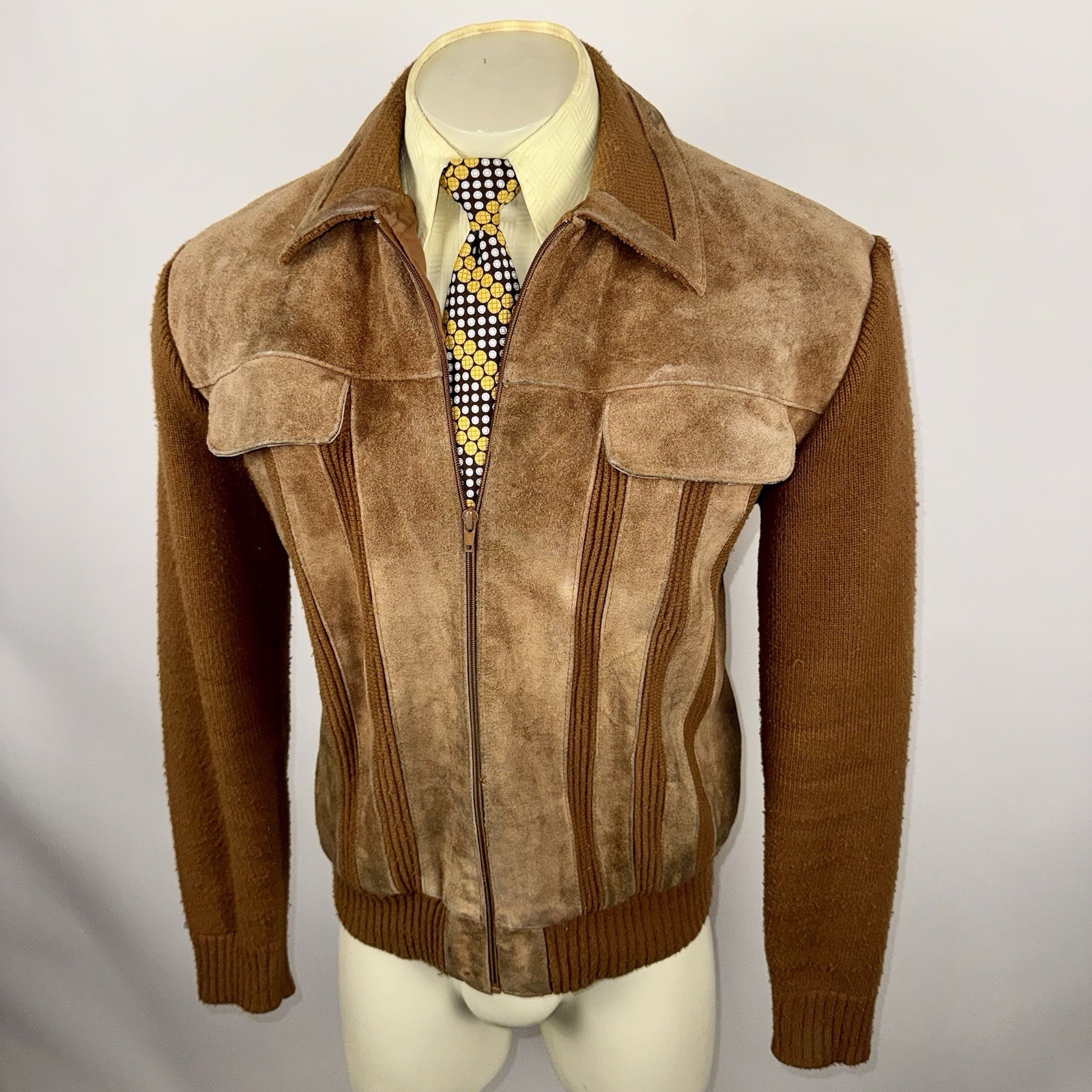 Vintage Hi Gear Jacket Sweater Mens XL Leather Suede Rockabilly MCM Mod 60s 70s