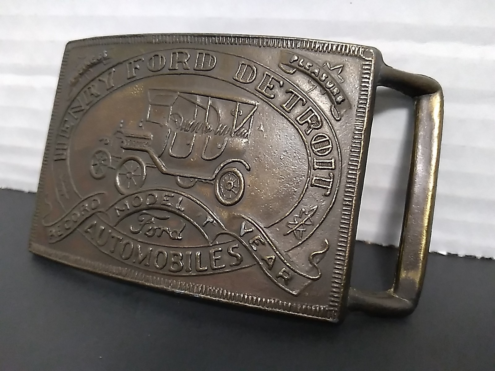Henry Ford Detroit Record Year Model T Automobiles Vintage Brass Belt Buckle
