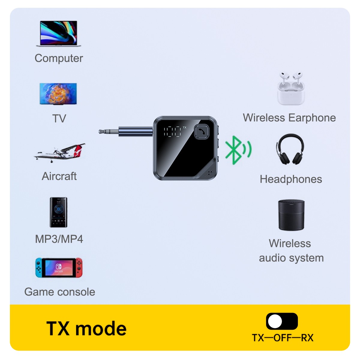 как выглядит Bluetooth V5.4 Transmitter Receiver 2-IN-1 Wireless Audio 3.5mm Jack Aux Adapter фото