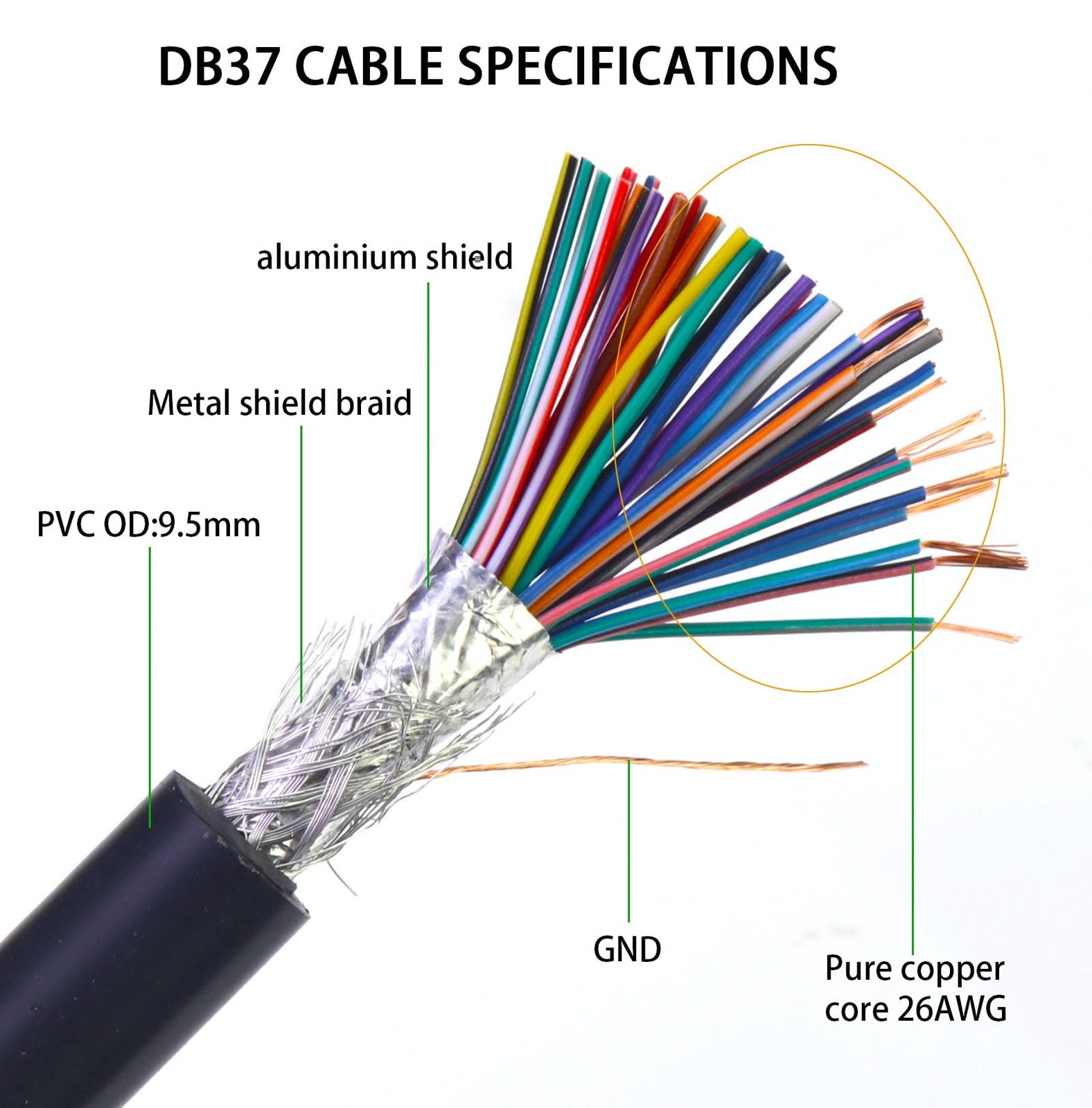 DB37 Female to Bare Wire with Cable Marker 3.3FT, D-SUB 37-Pin Connector to S...