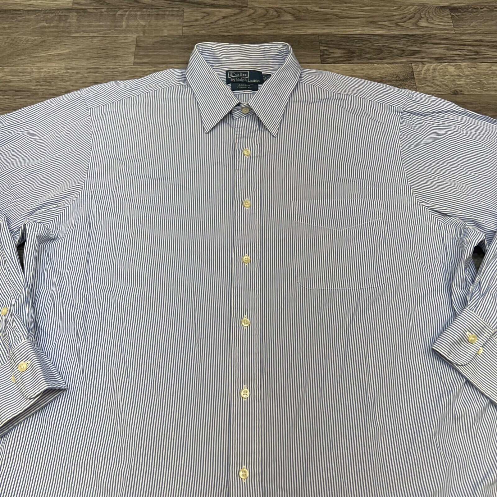 как выглядит RALPH LAUREN Mens Striped Blue Long Sleeve Full Button Down Shirt Size 17 1/2 фото