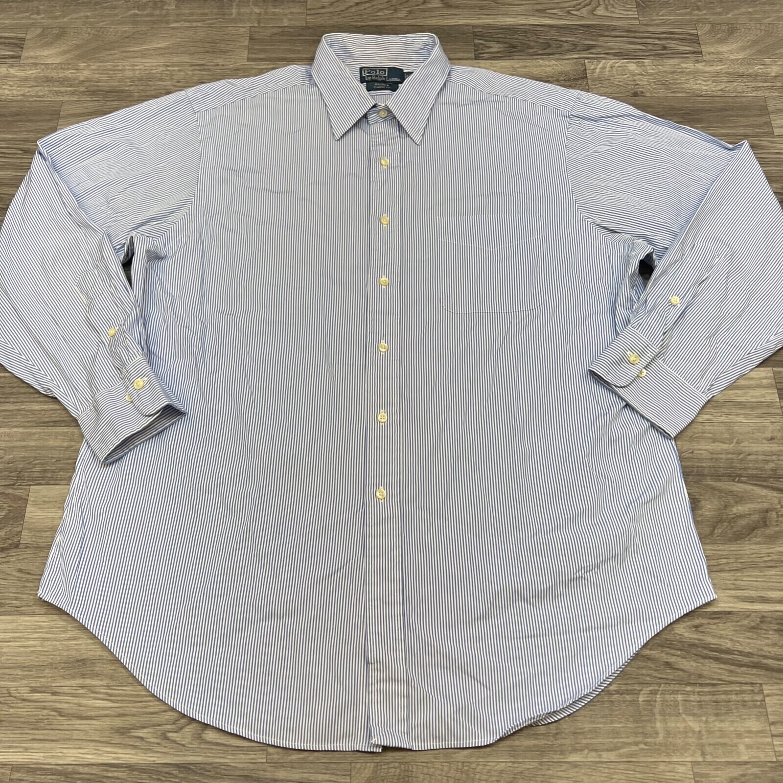 RALPH LAUREN Men's Striped Blue Long Sleeve Full Button Down Shirt Size 17 1/2