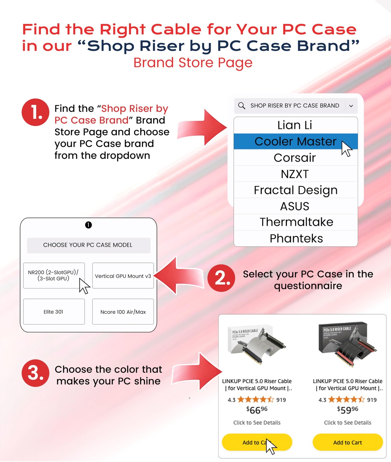 PCIE 5.0 Riser Cable for Vertical GPU Mount Straight Graphics Card GPU ...