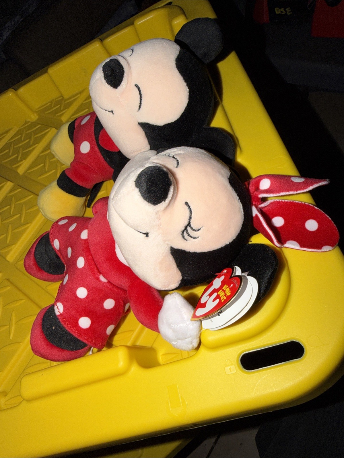 Mickey And Minnie Plush Set with TY beanie babies tags.
