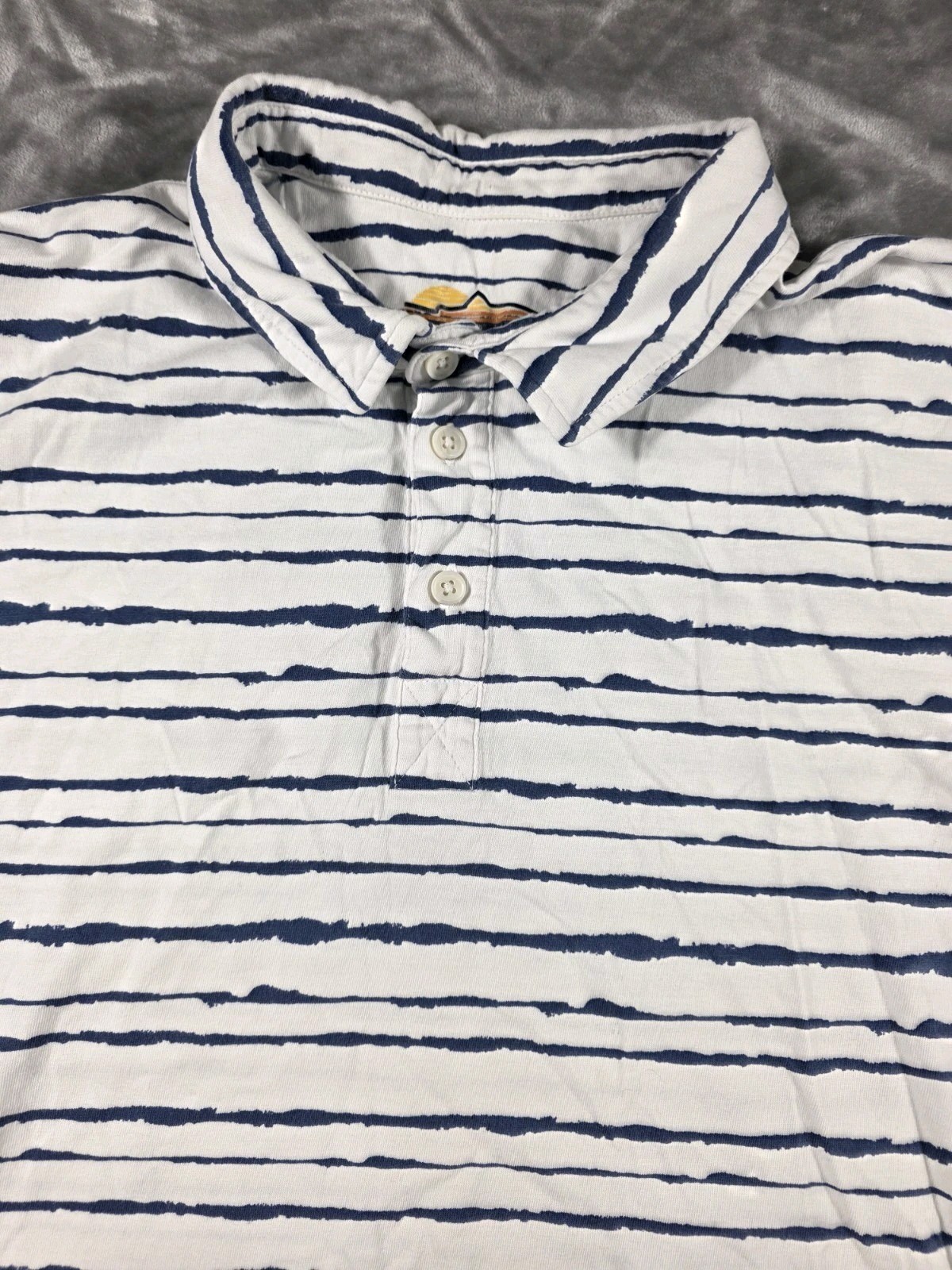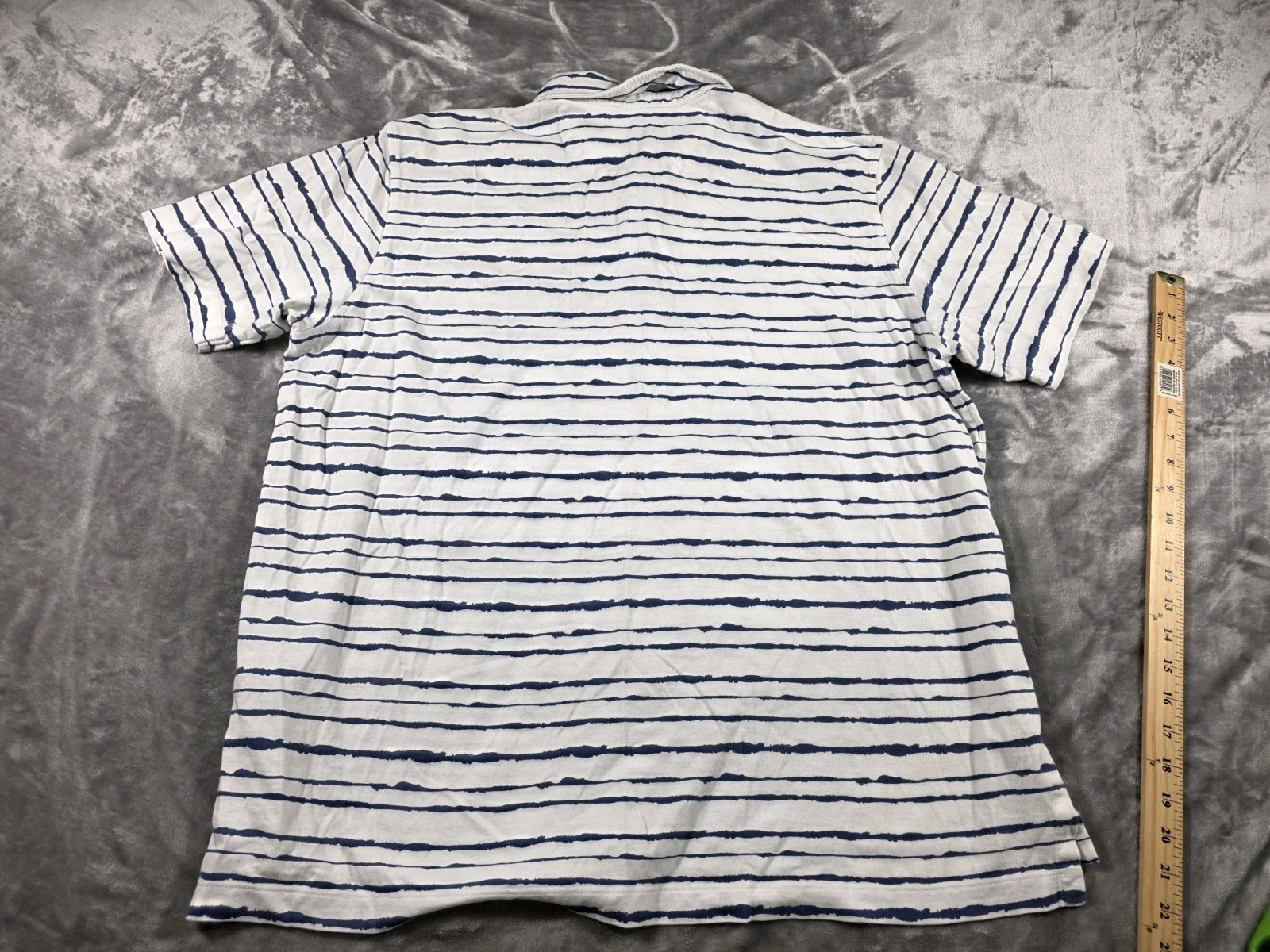 как выглядит Orvis Polo Shirt Mens XL White/Blue Cotton Striped Short Sleeve Pullover фото