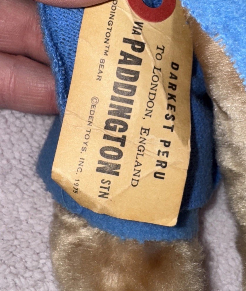 • Eden Paddington Bear Plush 13 Blue Coat Yellow Hat