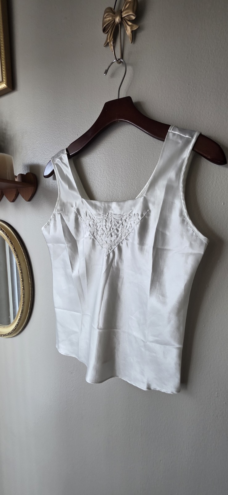 как выглядит Escapades White Satin Cami Blouse Women s S Vintage Lingerie Slip Top Y2K фото