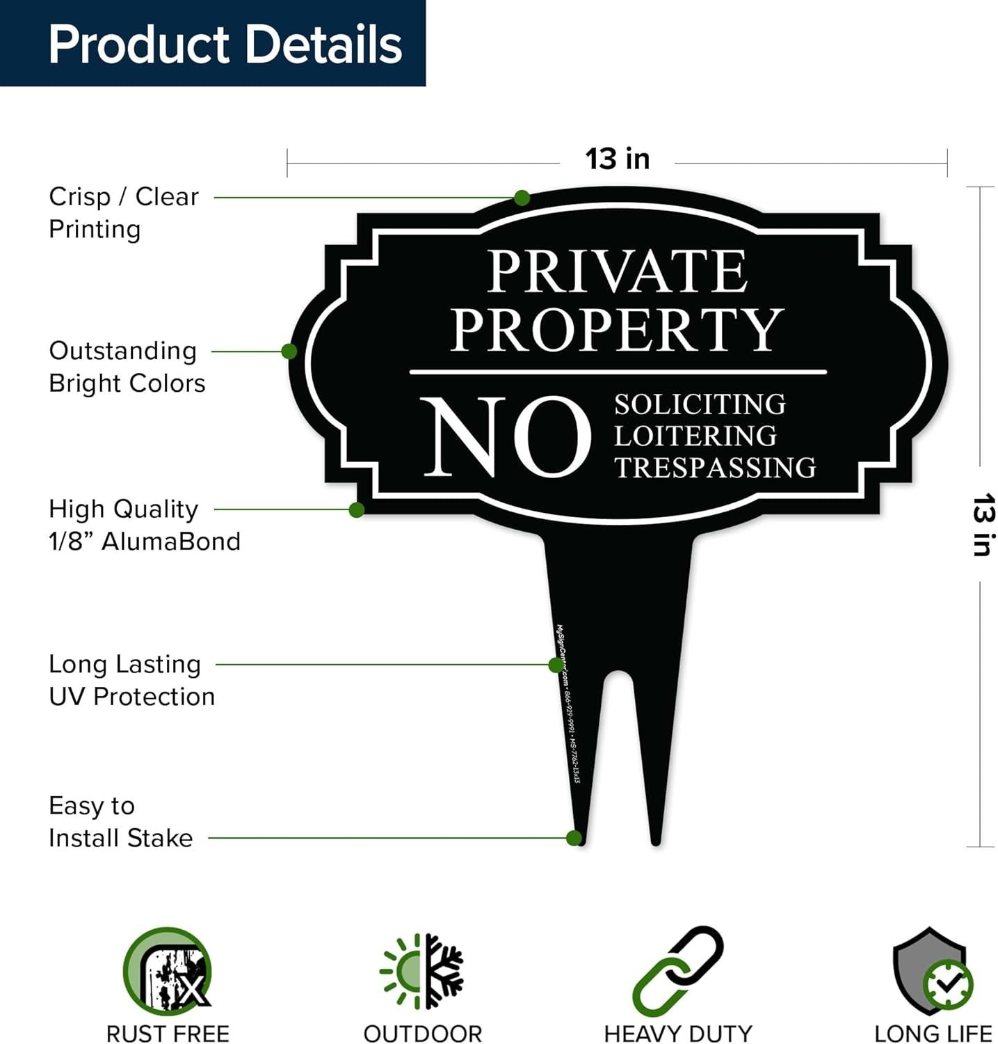 Private Property No Soliciting Loitering Trespassing Inground Sign, 13x13 Inc...