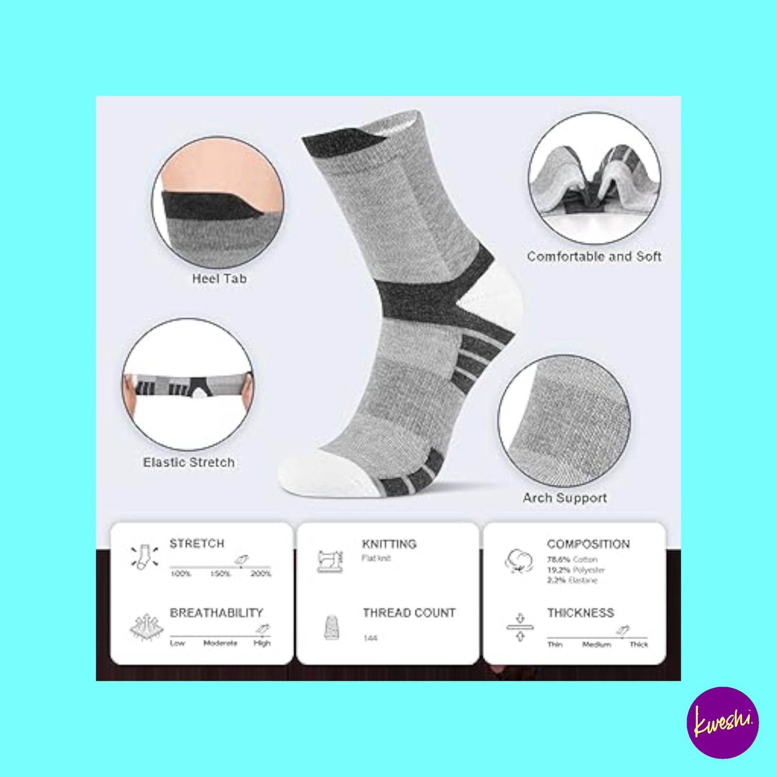 Особенности: Breathable, Cushioned, Moisture Wicking