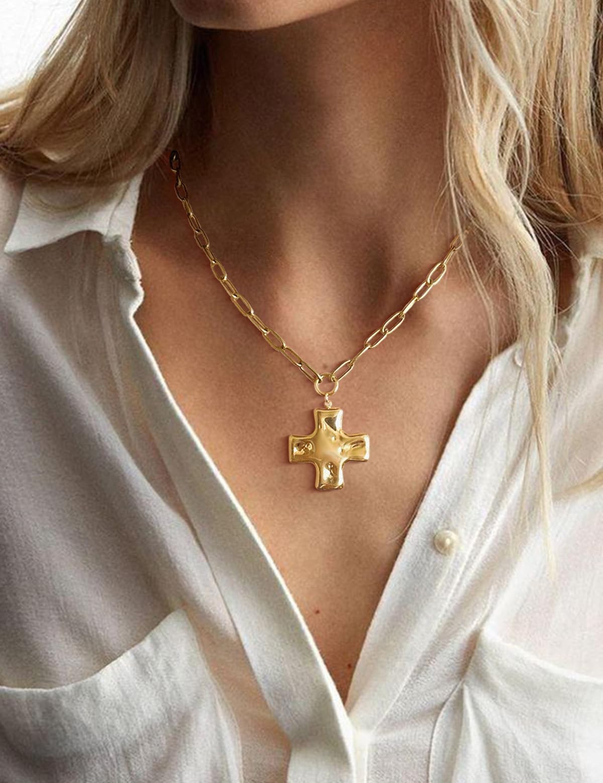 Chunky Gold Cross Necklace Jewelry for Women Trendy, Statement Paperclip Cros...