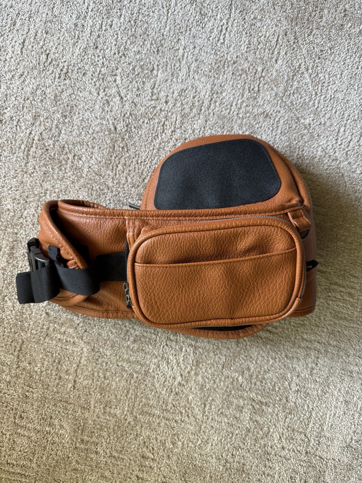 как выглядит Tushbaby Vegan Leather Hip Seat Baby - Carrier Cognac фото