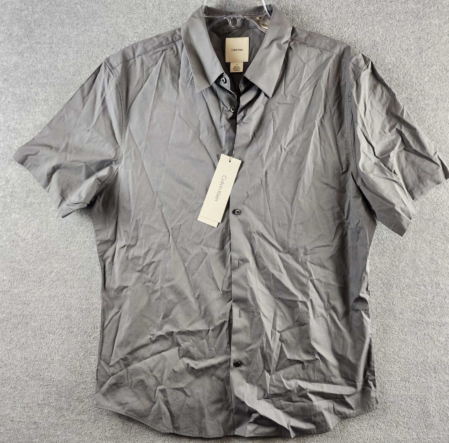 Calvin Klein Slim-Fit Stretch Solid Shirt Men's M Castlerock Button Closure S/S