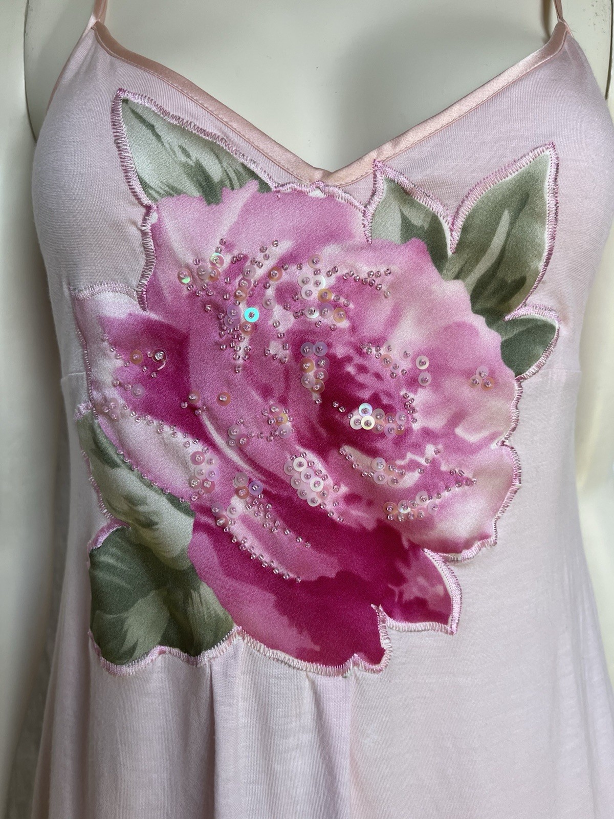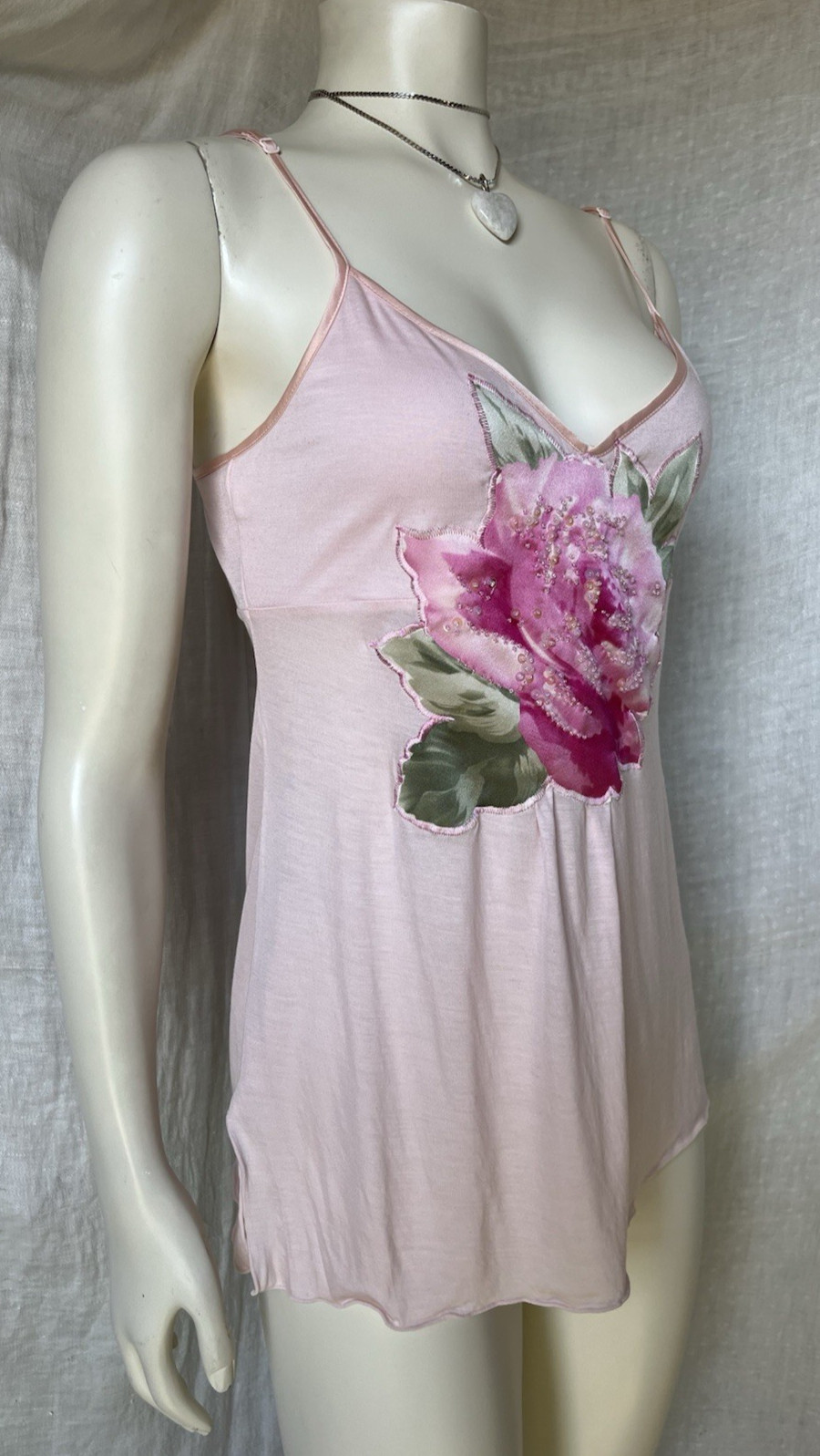 как выглядит Vintage Y2K Soft Pink Camisole Tank Top Sparkle Beaded Romantic Fairy Coquette M фото