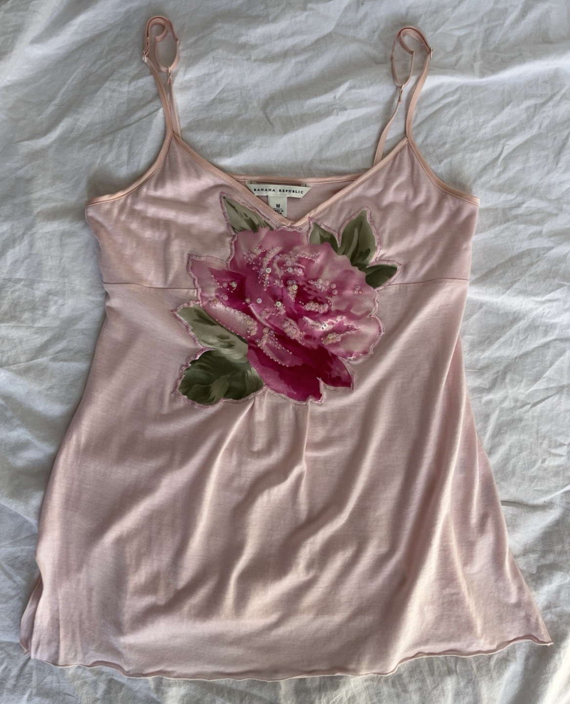 Vintage Y2K Soft Pink Camisole Tank Top Sparkle Beaded Romantic Fairy Coquette M