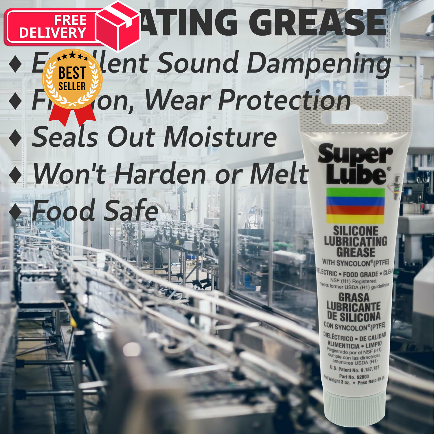Super Lube 92003 Silicone Lubricating Grease with 3oz Tube, Translucent White
