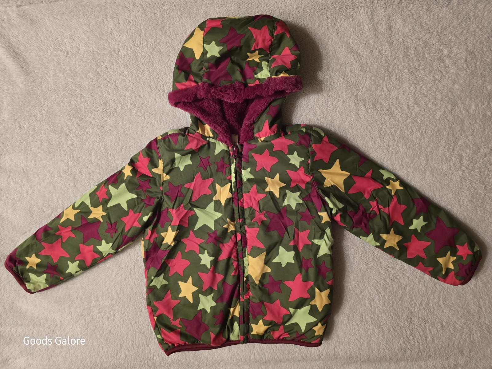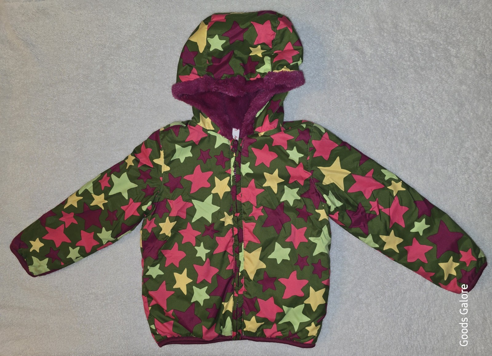 как выглядит Hanna Andersson Puffer Coat Reversible MultiColor Stars Full Zip Hoodie Sz 100 4 фото