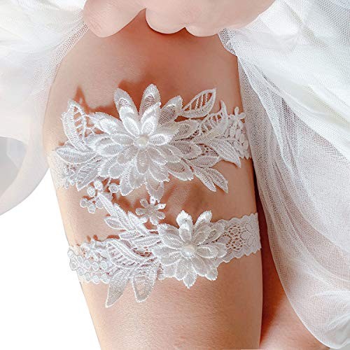 Wedding Garters for Bride Bridal Lace Garter Set Floral Leg Ring with White