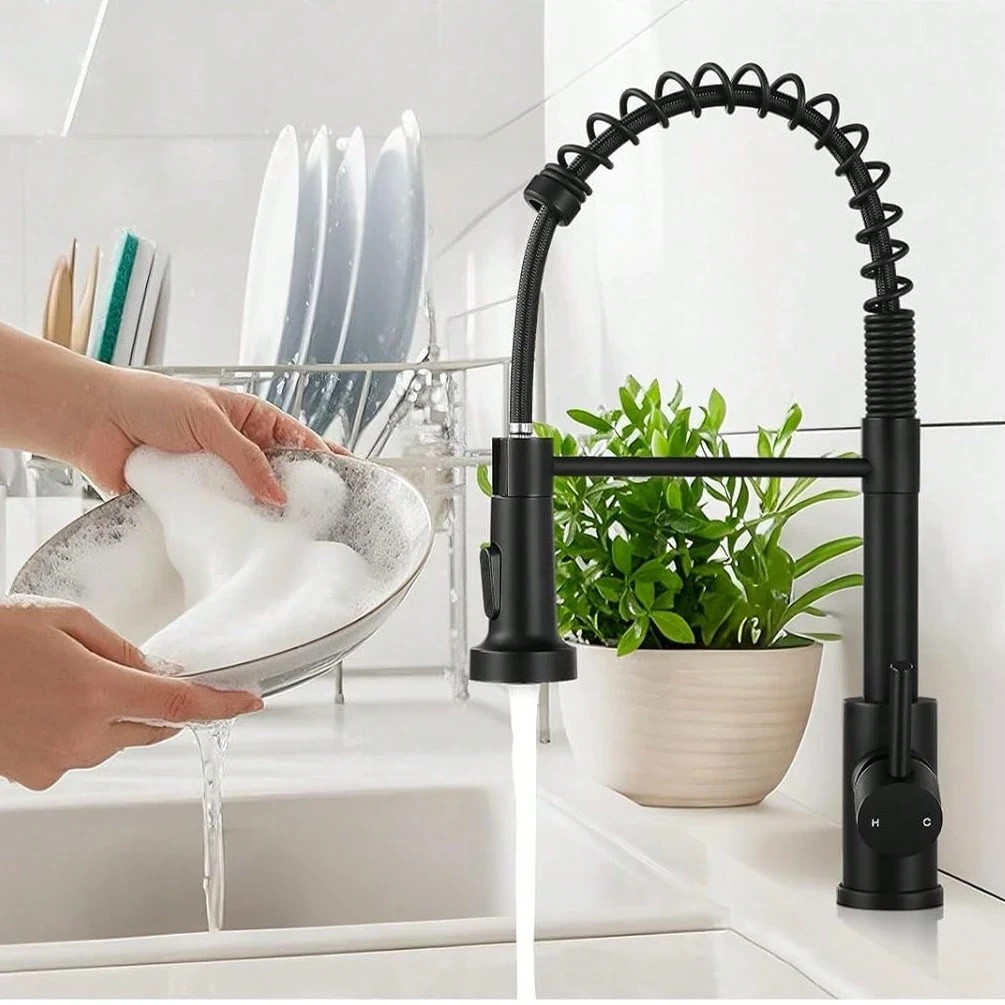 Kitchen Sink Faucet stainless steel Swivel Single Handle Pull Down Sprayer Mixer