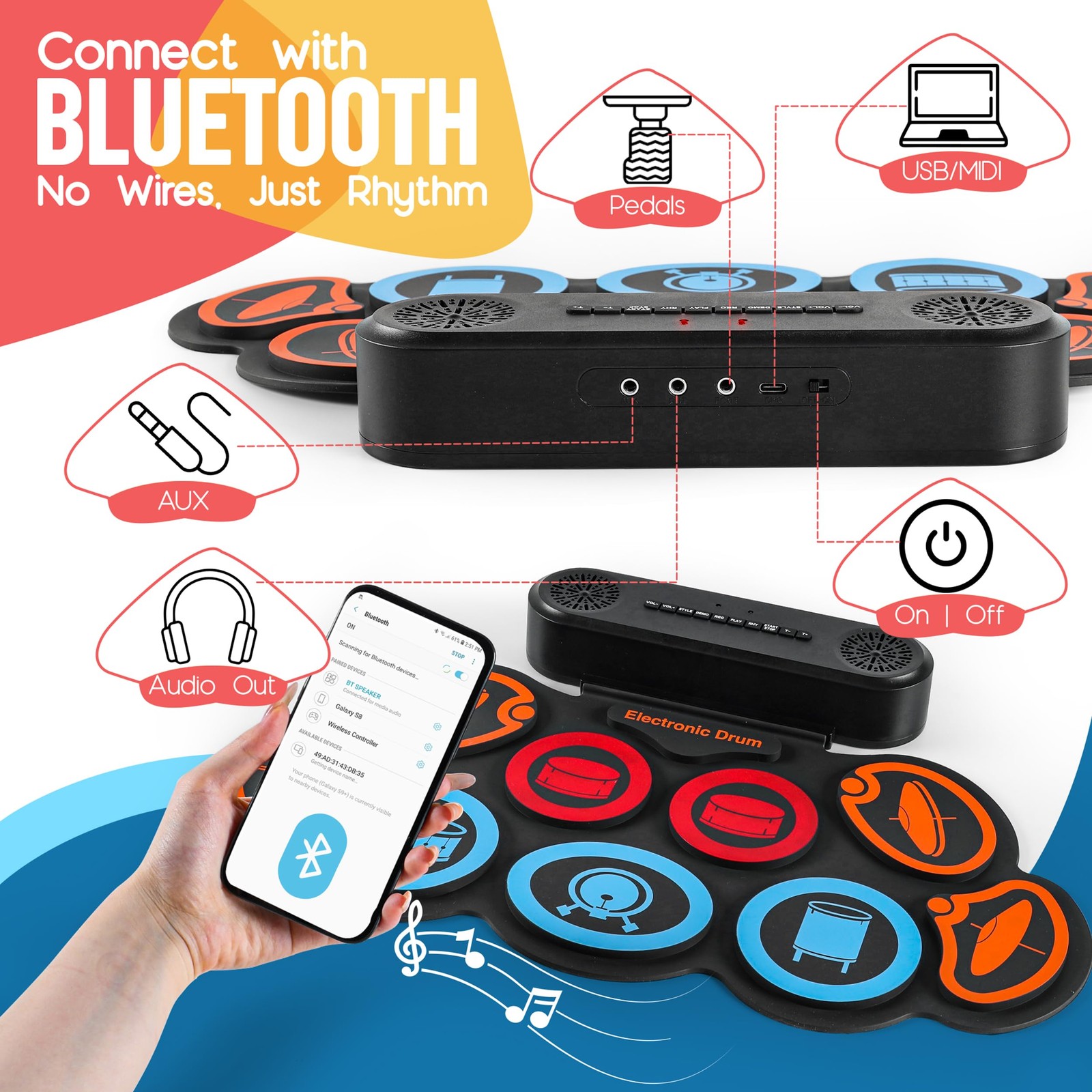 Electronic Drum Set 9 Pad, Portable Roll Up Drum Kit with USB MIDI Bluetoot...