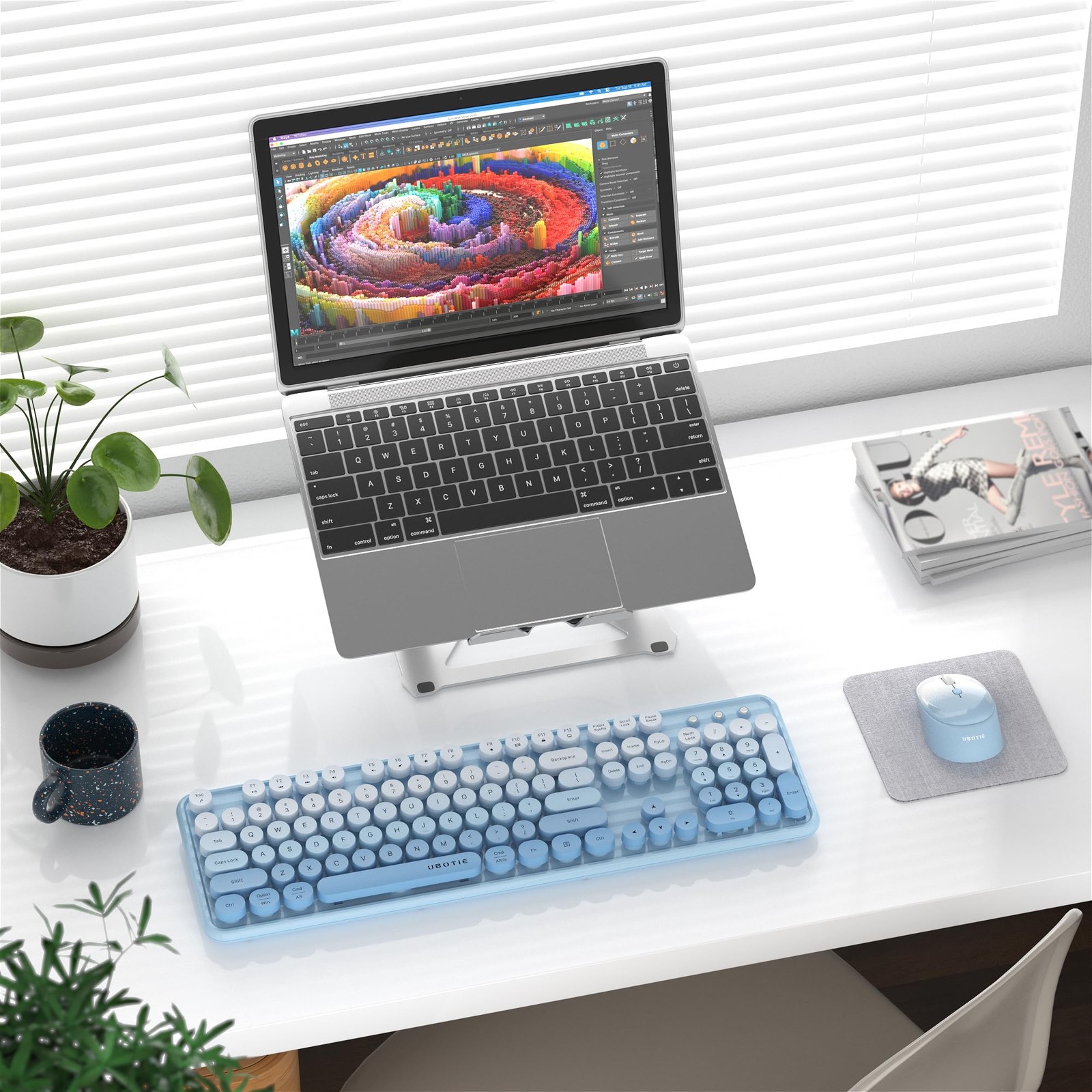 как выглядит xUBOTIE Wireless Keyboard and Combo, 104-Key Colorful Round Keycap, QWERTY La... фото