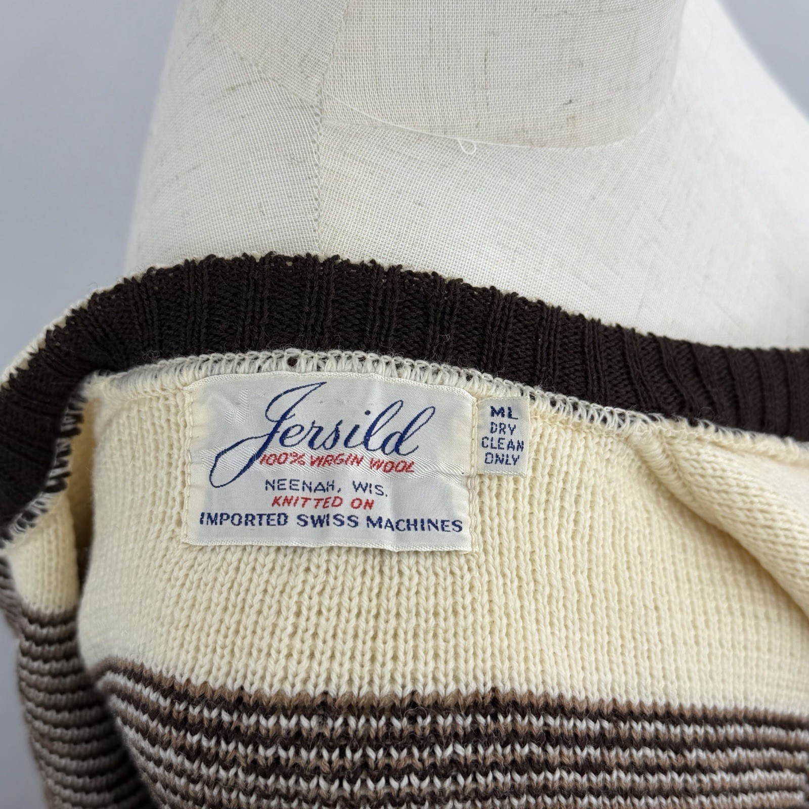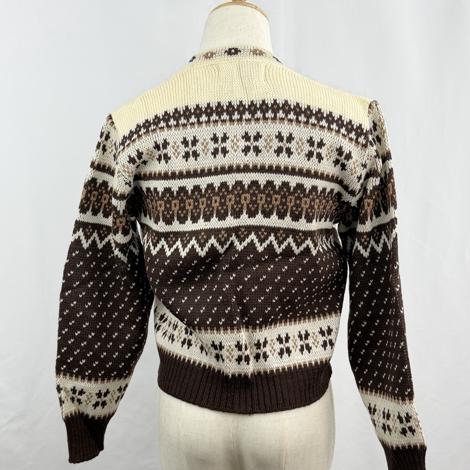 Vintage Jersild Wool Fair Isle Cardigan Nordic Brown Cream Knit Sweater ML
