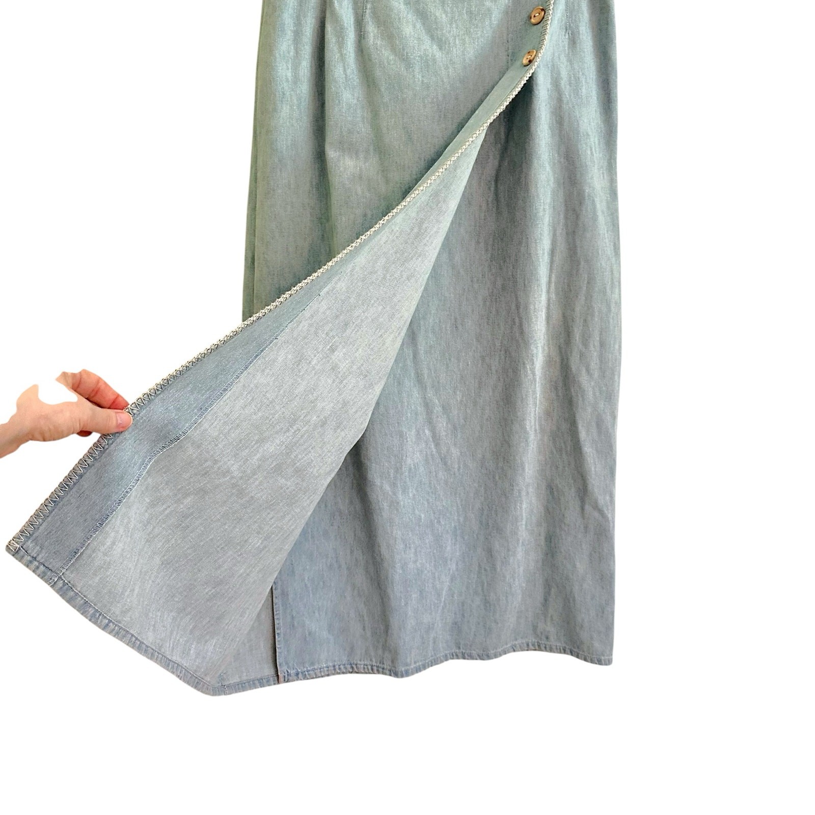 как выглядит Vintage Denim Semi Wrap Midi Skirt Britton Whip Stitch Sz 12 Nipon Studio фото