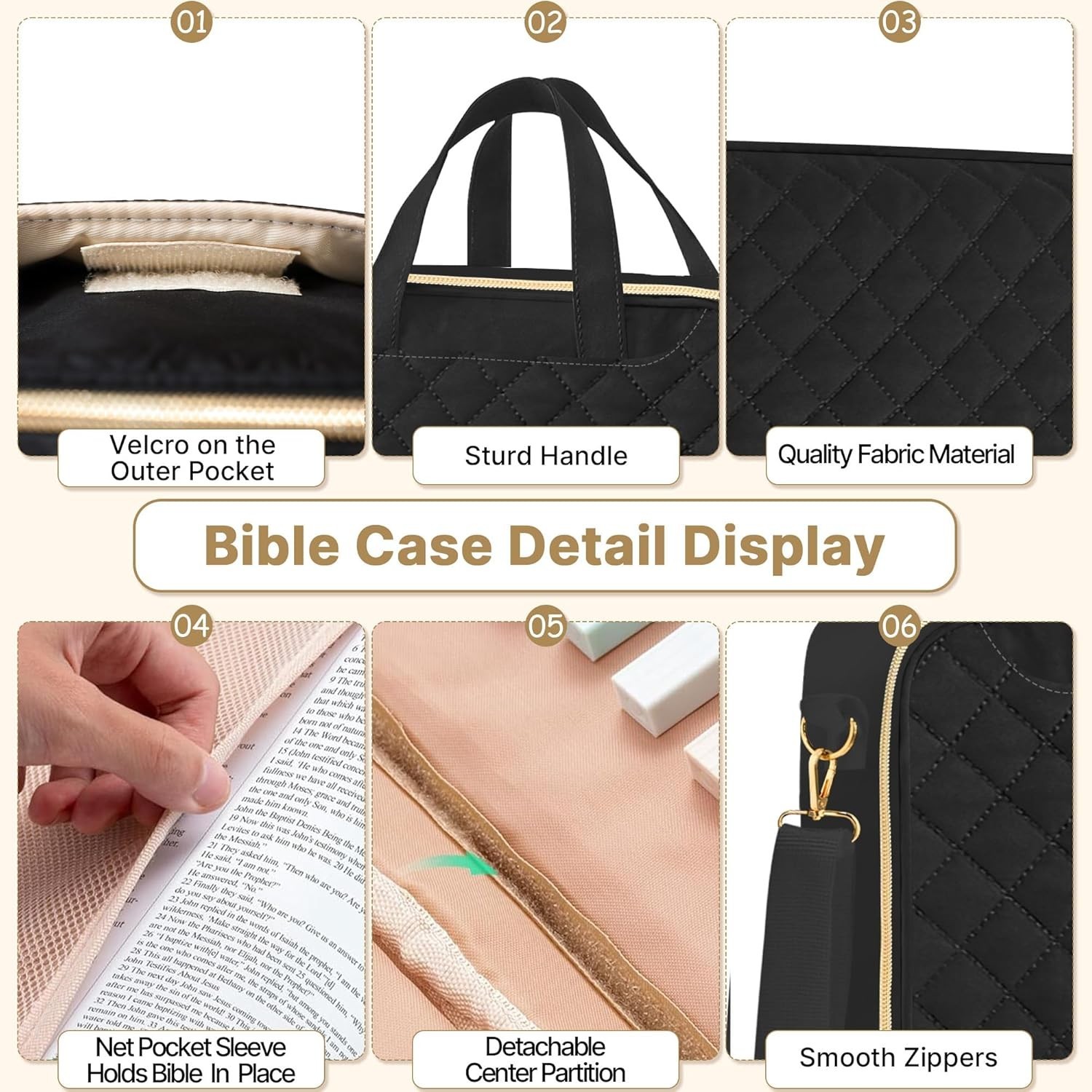 • Bible Cover Case for Women, Large Quilted Bible Bag with Shoulder Strap and H...