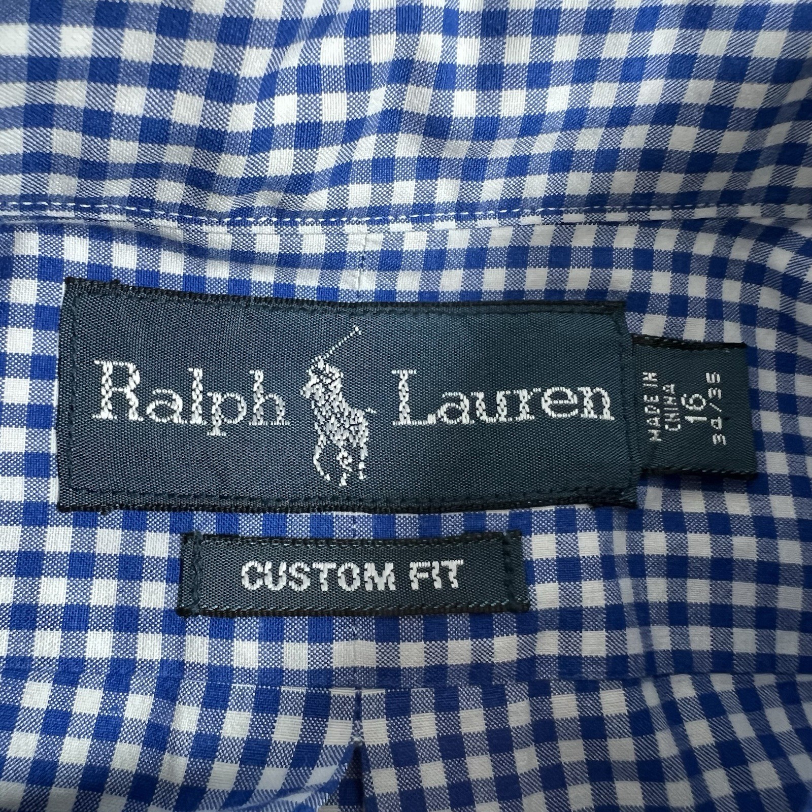 Ralph Lauren Mens 16 Blue White Gingham Check Long Sleeve Button Down Shirt