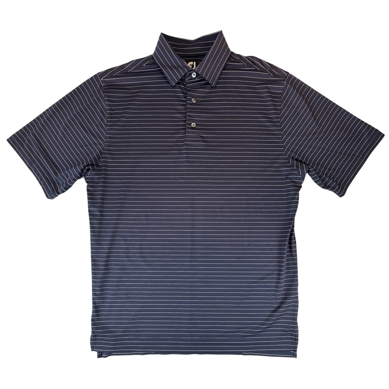 FootJoy Mens ProDry Navy Blue White Striped Short Sleeve Golf Polo Shirt Size M