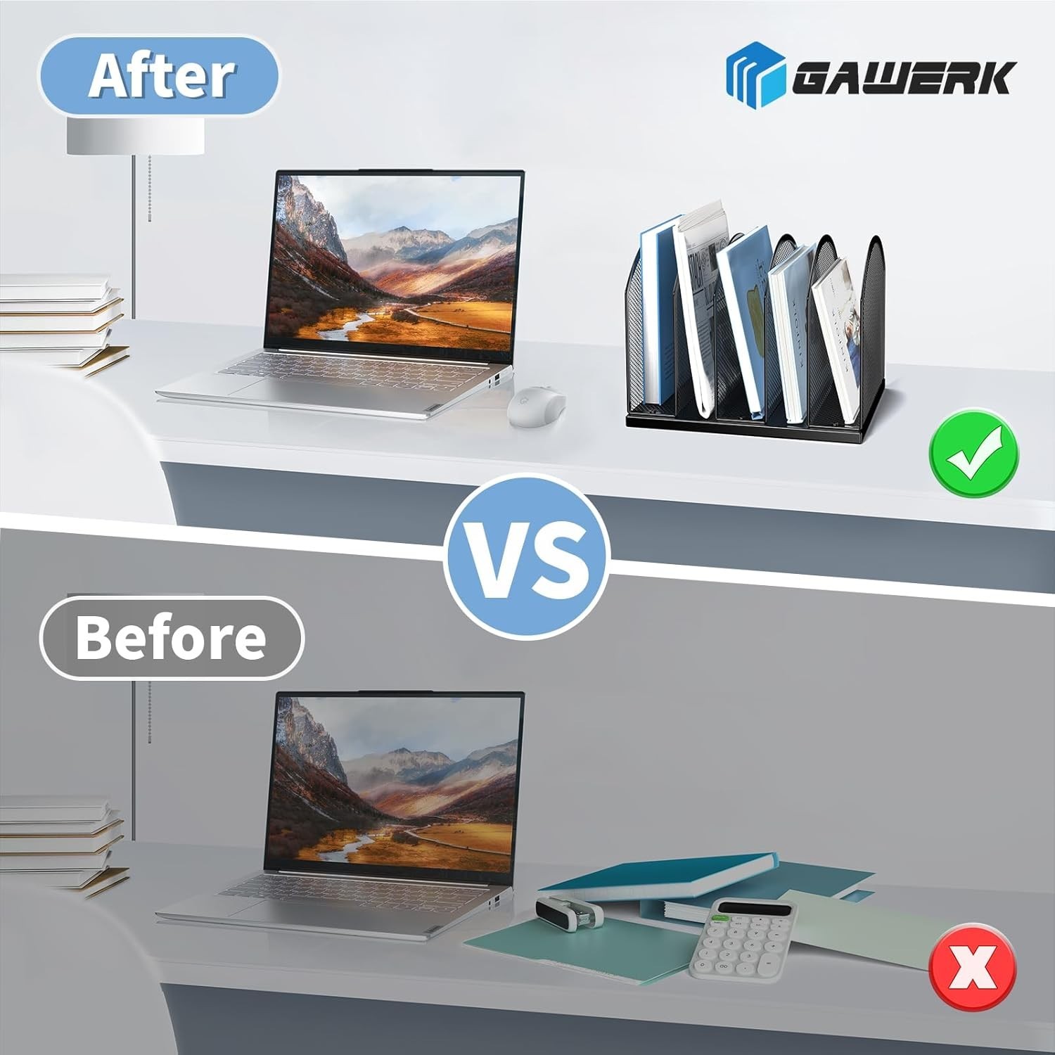 5-Section Vertical Desktop Organizer, 5-Section Mesh File Folder Stand Sorter...